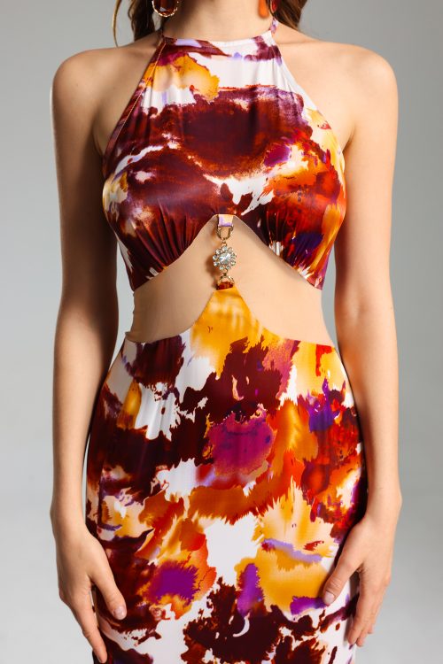 Be the first to review “Johe Flower Print Mesh Halter Slit Dress” Cancel reply