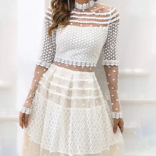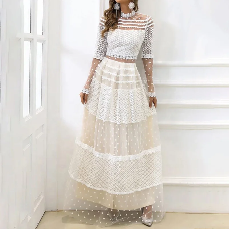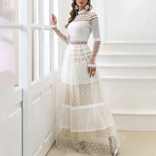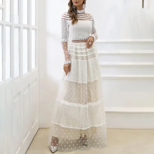 Product Name: MANNI Dresses Women 2022 Zipper Back Dobby Mesh & Lace Beach Dress White Maxi Dresses Sundress