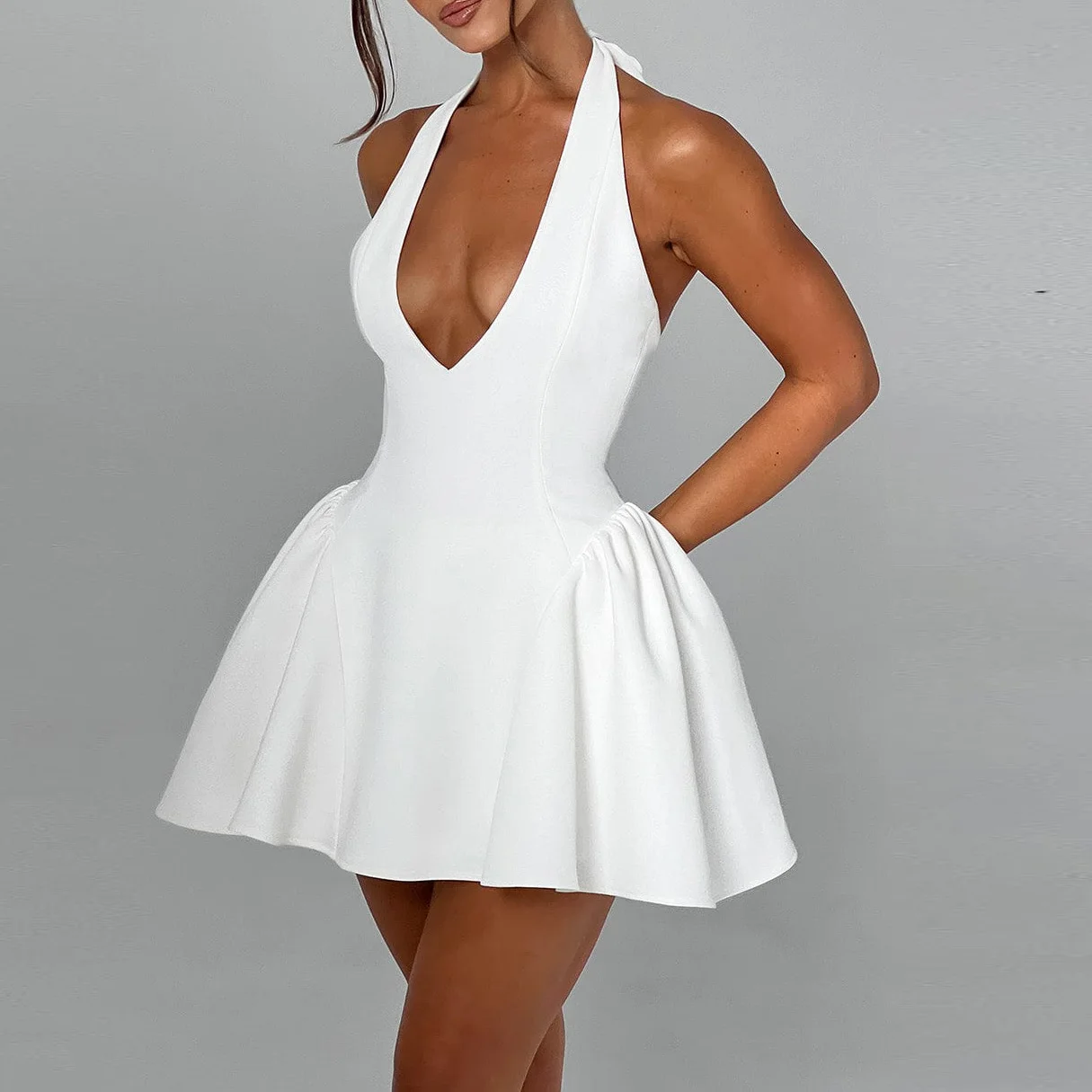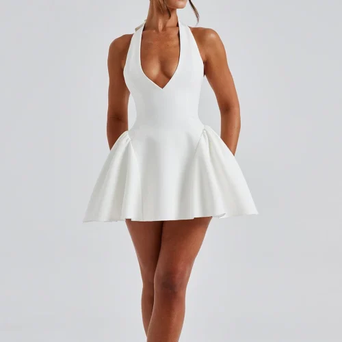 Product Name: Manufacturer Summer Sexy Casual Luxury Fashion Ladies Halter Deep V Neck Backless Mini Dress Women