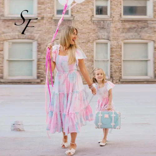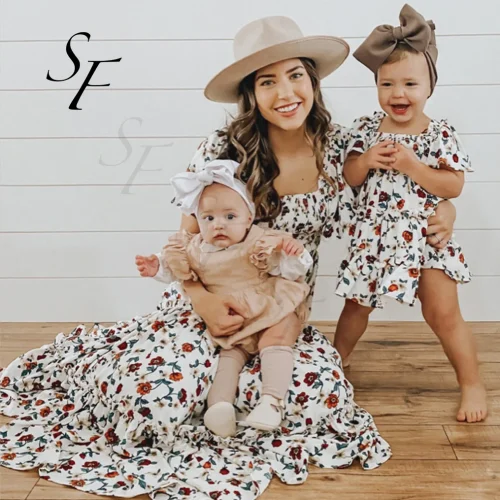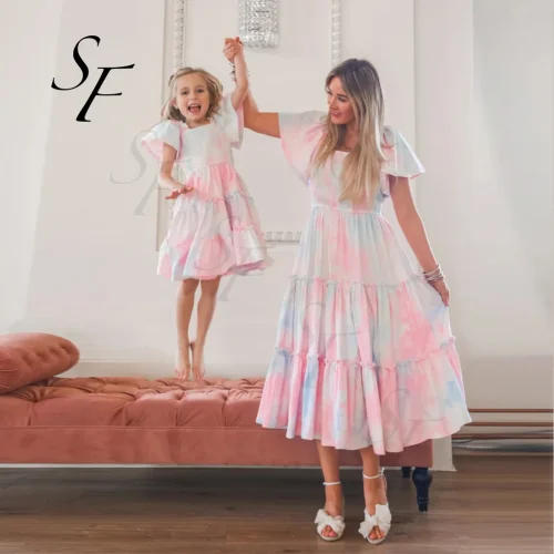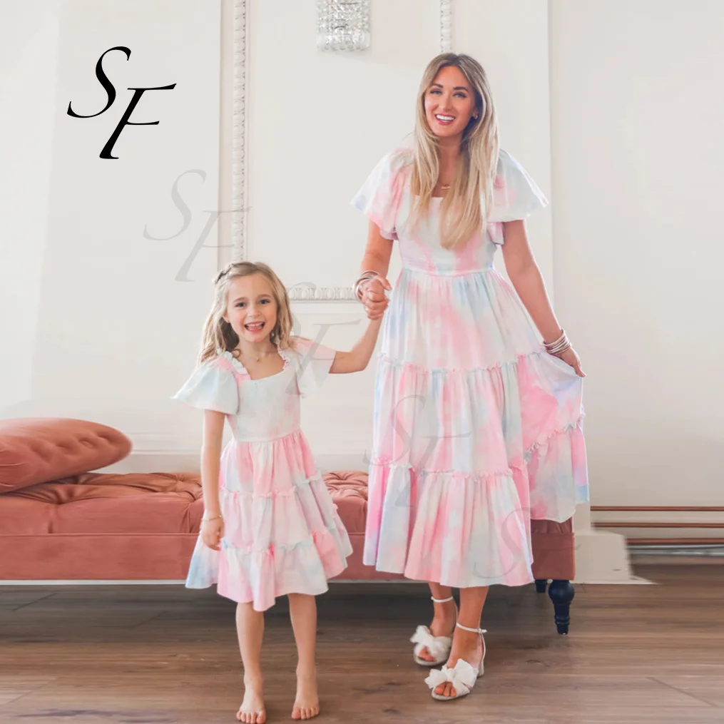 Product Name: Matching Short Sleeve Midi Dress Vestidos Loose Fit Parent-Child Family Matching Outfits Long Skirt Linen for Family