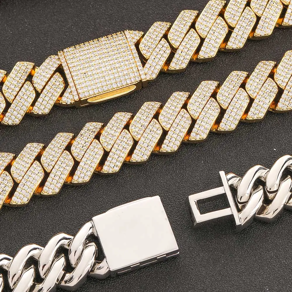 Men Hip Hop Jewelry 20mm 3 Rows Gold Chunky Necklace Iced Out Cz Prong Cuban Link Chain Necklace Diamond Cuban Chain
