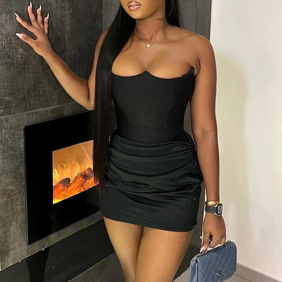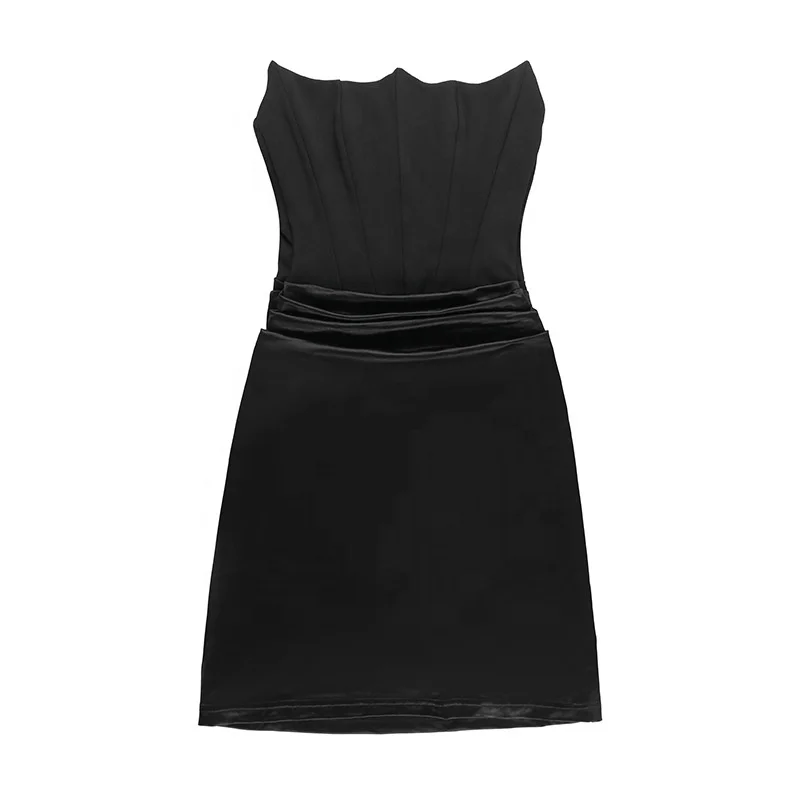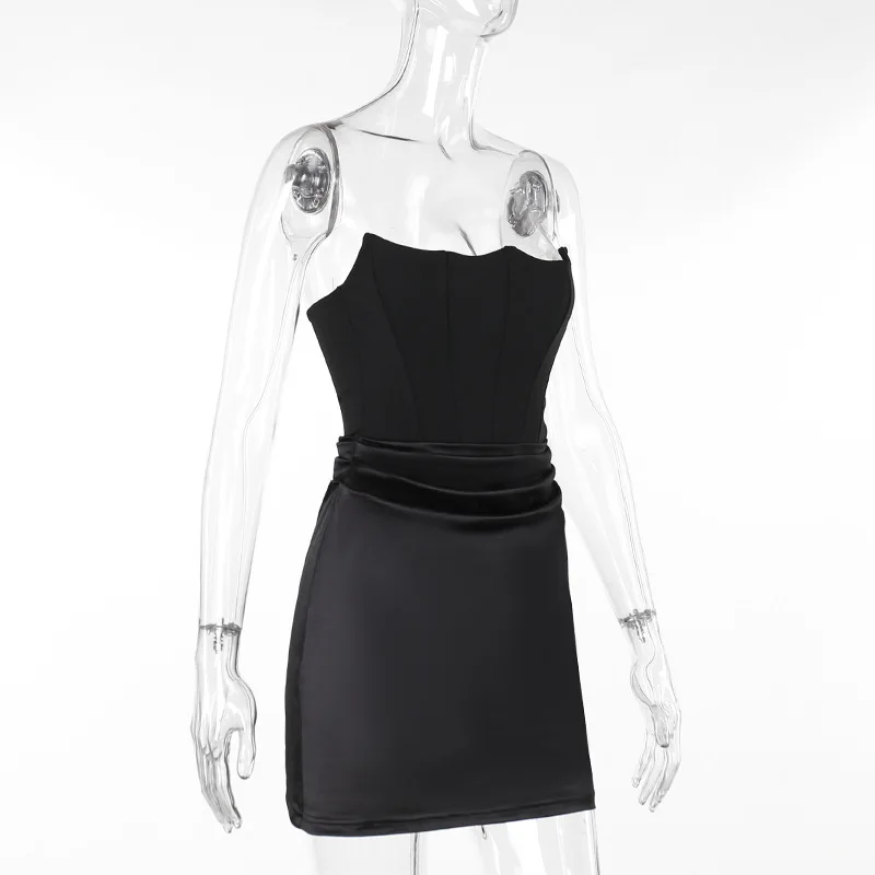 Product Name: Modest Sexy Ladies Dresses Nightclub Satin Fishbone Strapless Patchwork Strapless Corset Bodycon Mini Dress