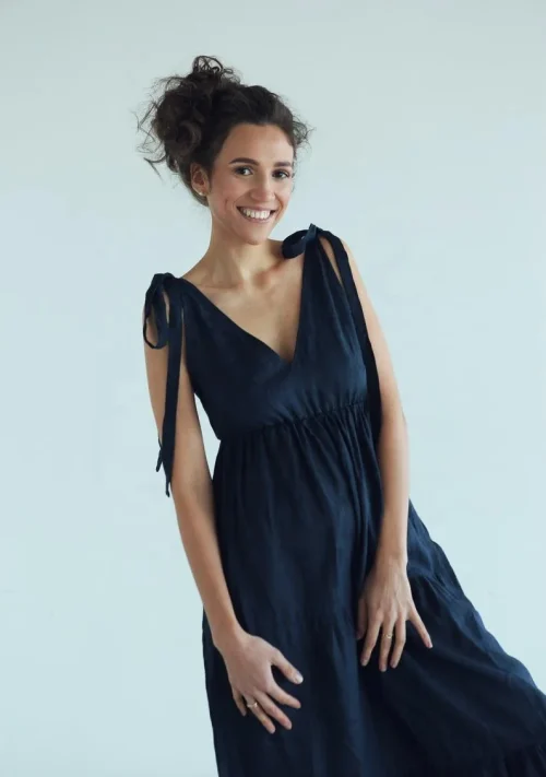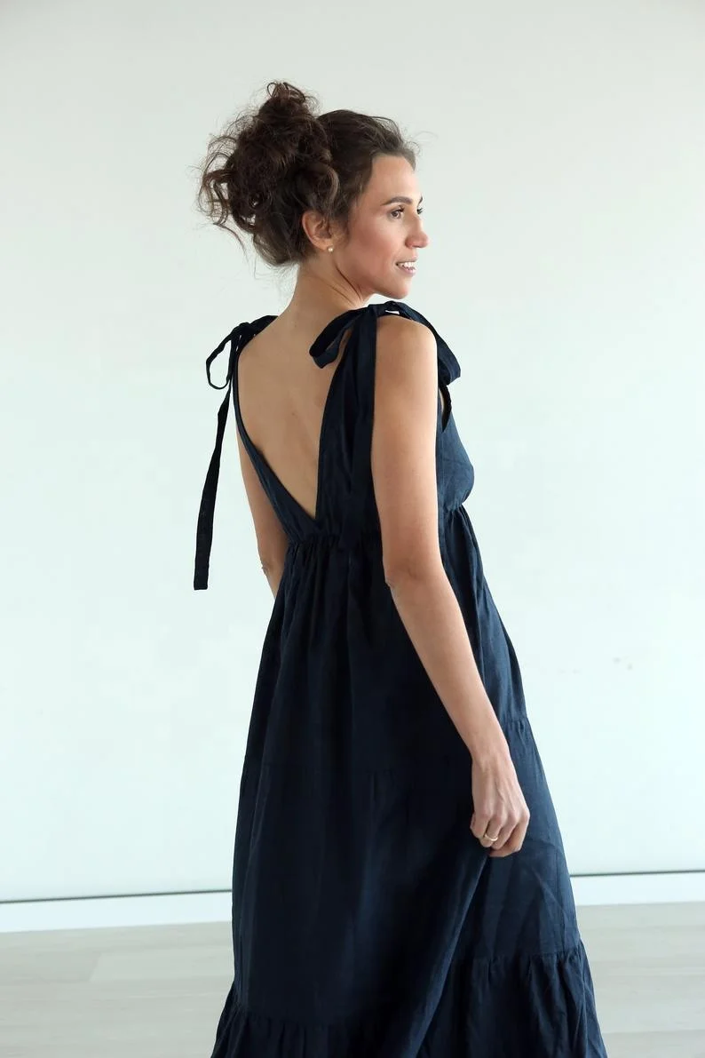 Product Name: Natural Soft Linen Maxi Dress for Women XS Plus Size Sexy V Neck Front Back Solid Beach Boho Sundress Shoulder Tie Party Wear