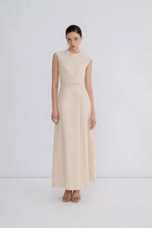New Arrival Casual Womens Dresses Sleeveless Yuri Twist Midi Dress High-Quality Fabric Women’S Clothes Whiteant r