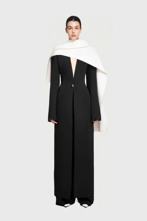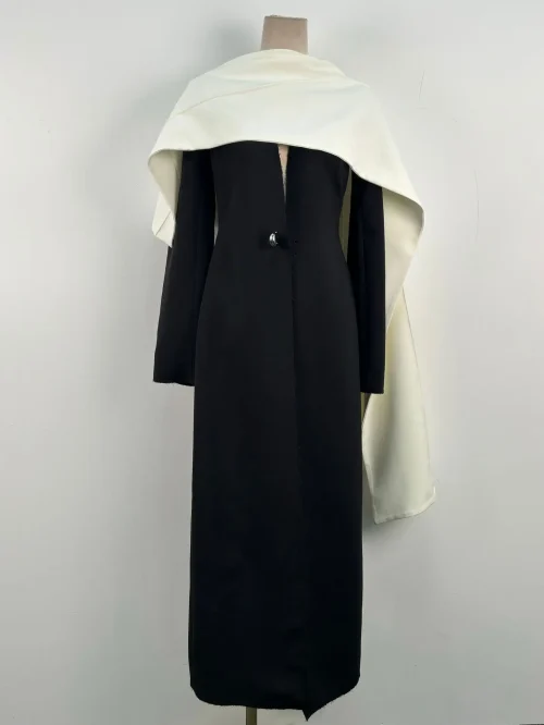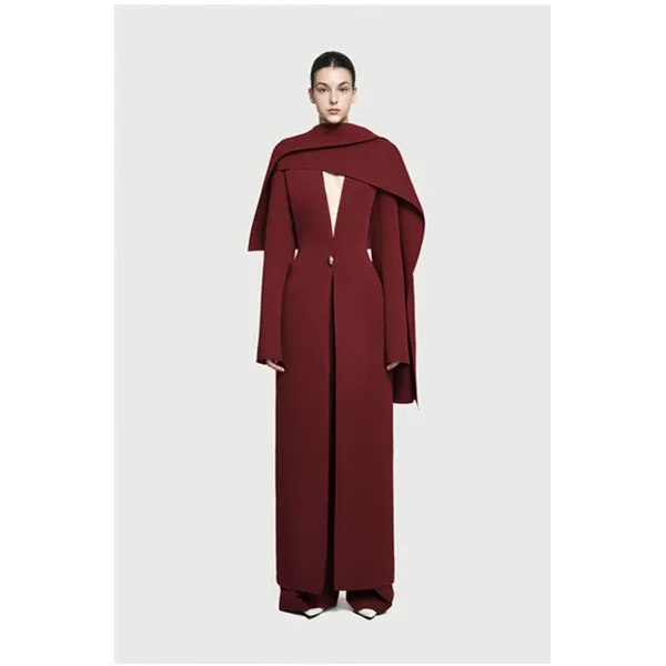 new arrival V-neck open-front cape-style long coat new style, high-end, slim-fitting long dress