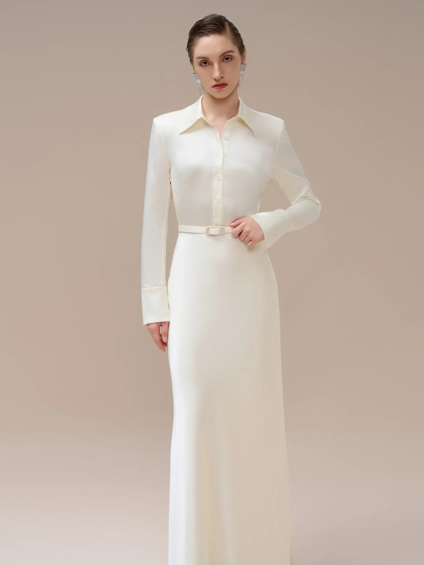 Product Name: New Arrival Women Casual Dresses Black & White Front Buttons AUDREY DAY DRESS Mison Satin Fabric Elegant Long Dress in Vietnam