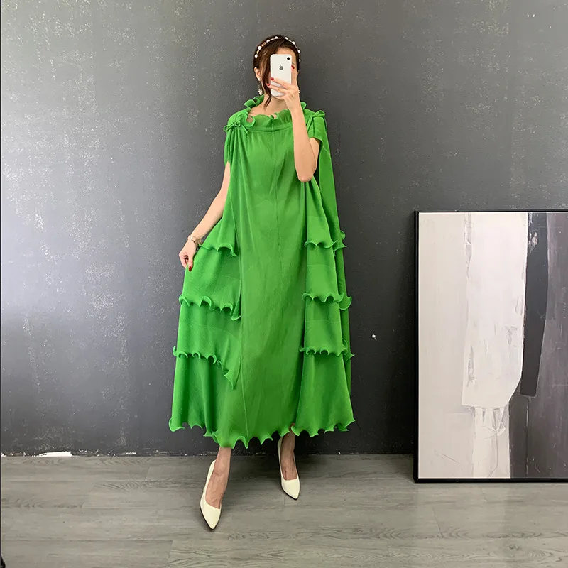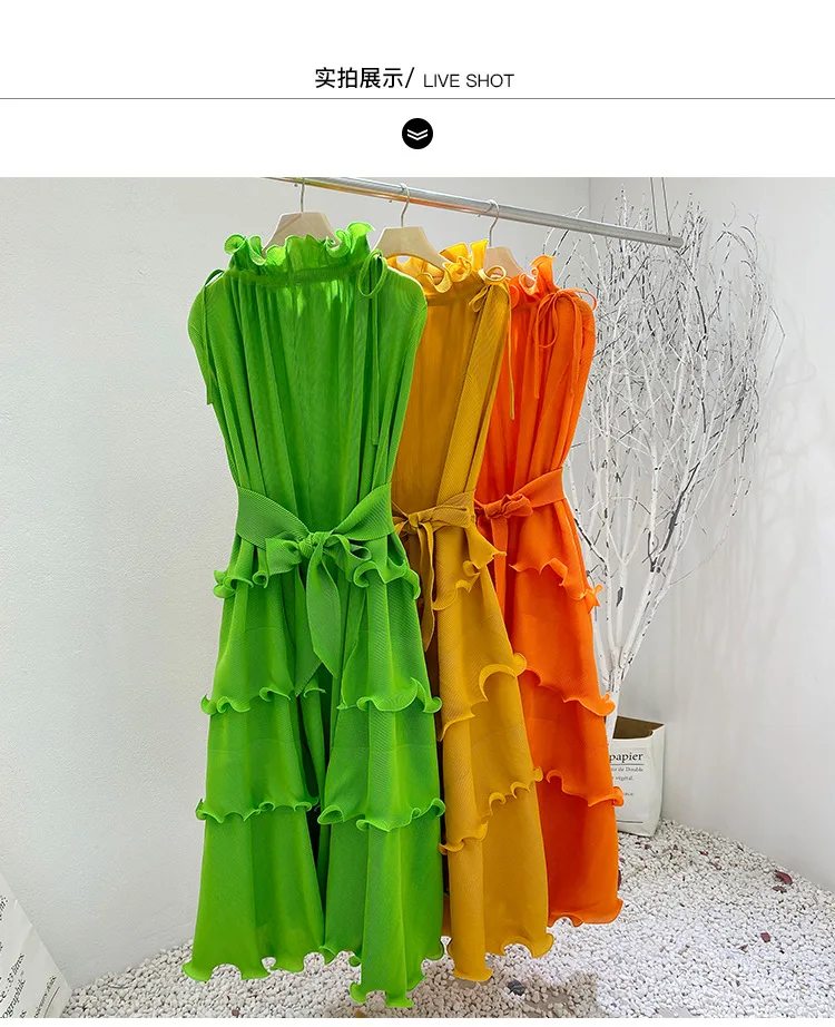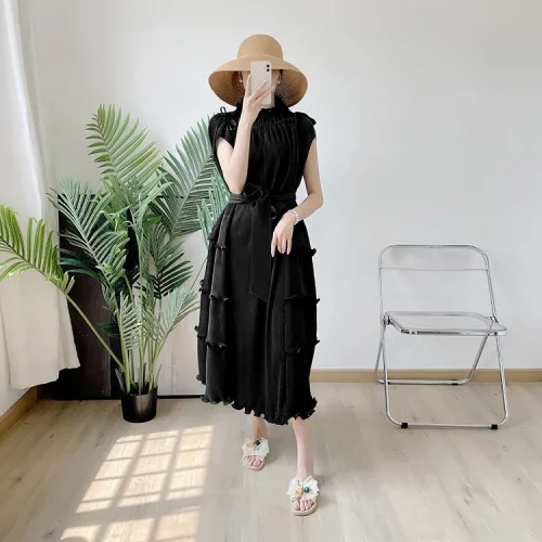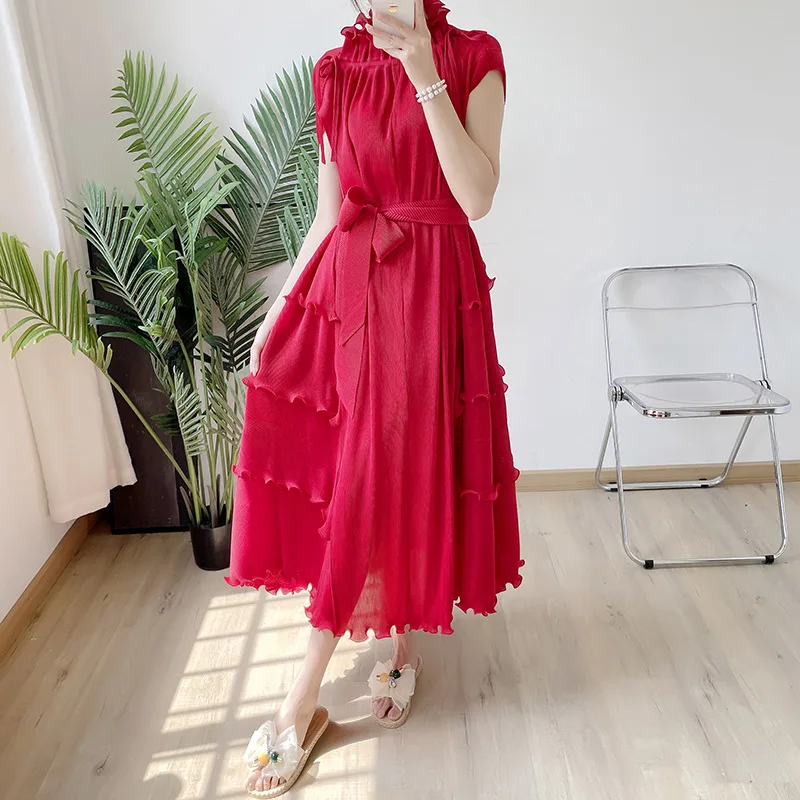 Product Name: New Clothes Loose Elegant Fungus Lace Belt Pleated Dress Vintage Women Casual Dresses