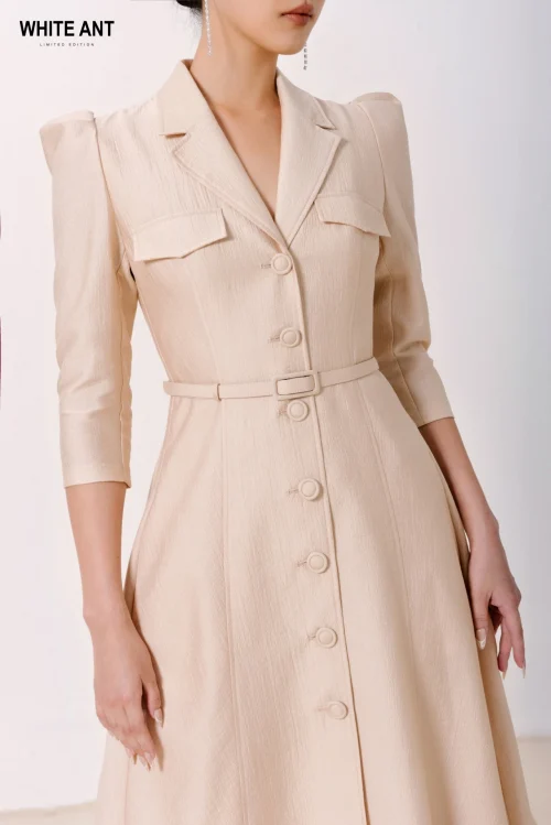 New Design Casual Womens Dresses With Belt Rafael Notcher Dress High-Quality Fabric Packing Whiteant Vietnam Local Brand
