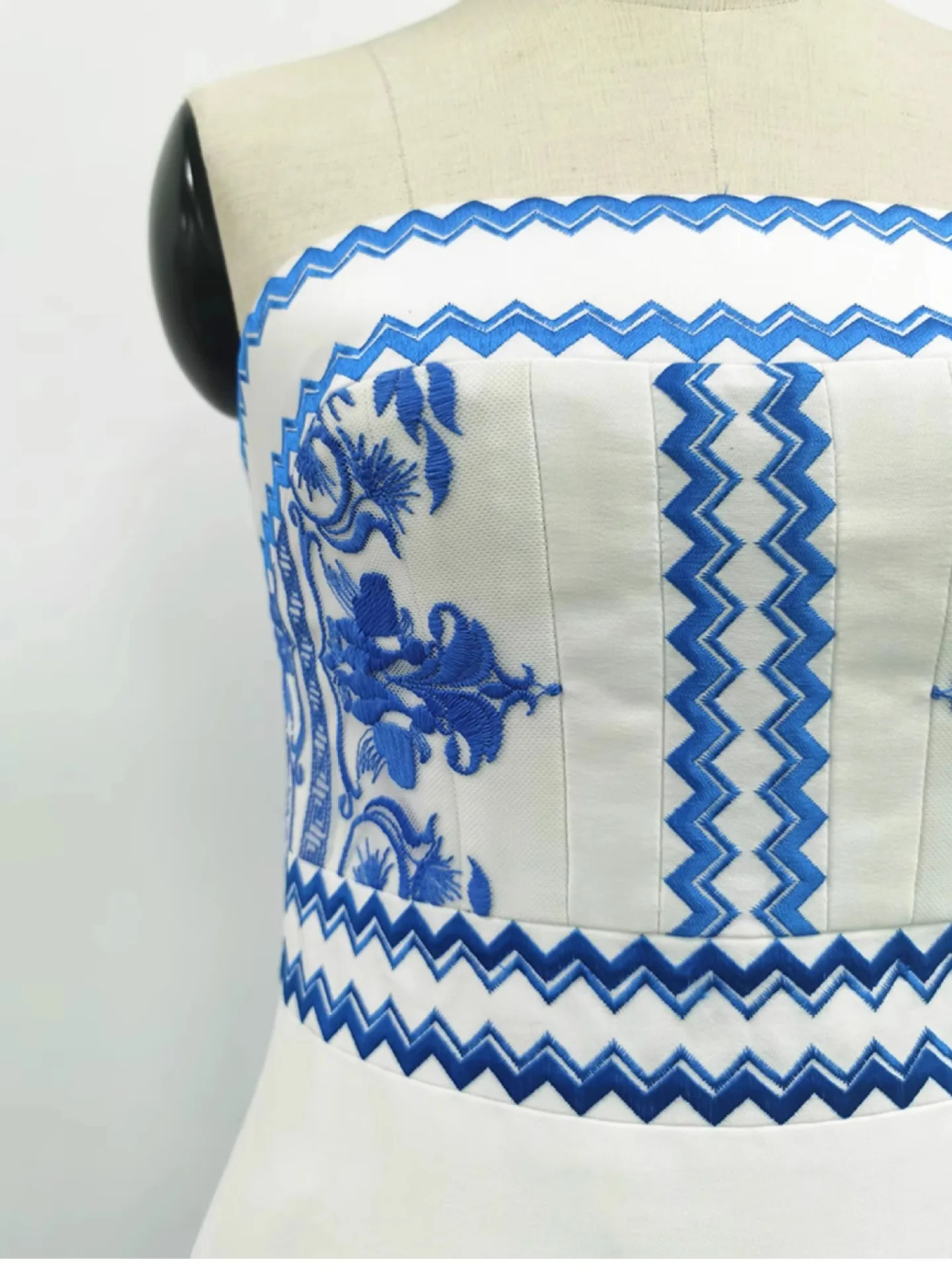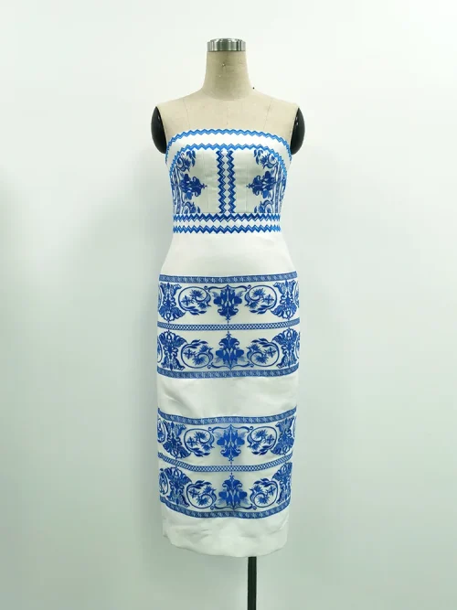Product Name: New Design Summer Print Letters Slim Blue and White Female Long Skirts for Women