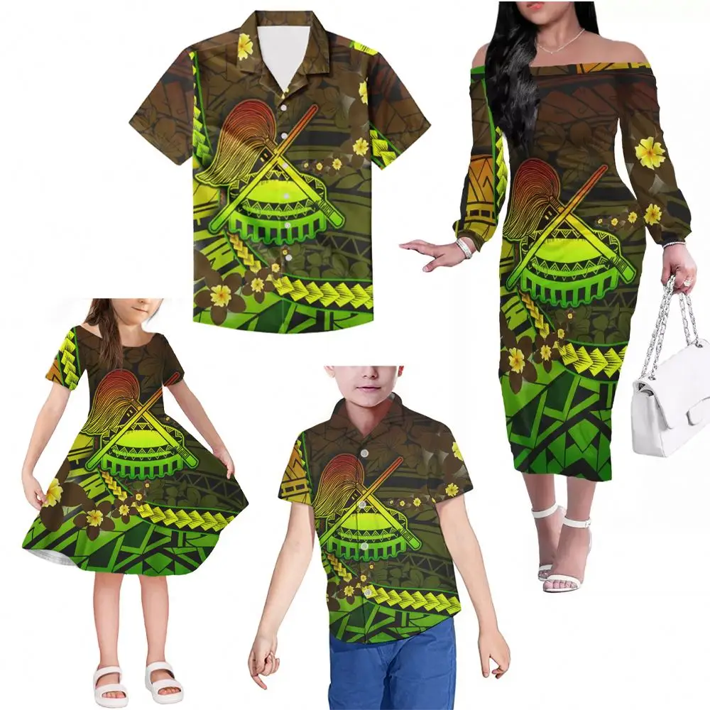 NEW Dress Designs Casual Women Dress Matching Men Shirt Kids Shirt Polynesian Tribal Samoan Design Plus Size 4-piece Family Sets