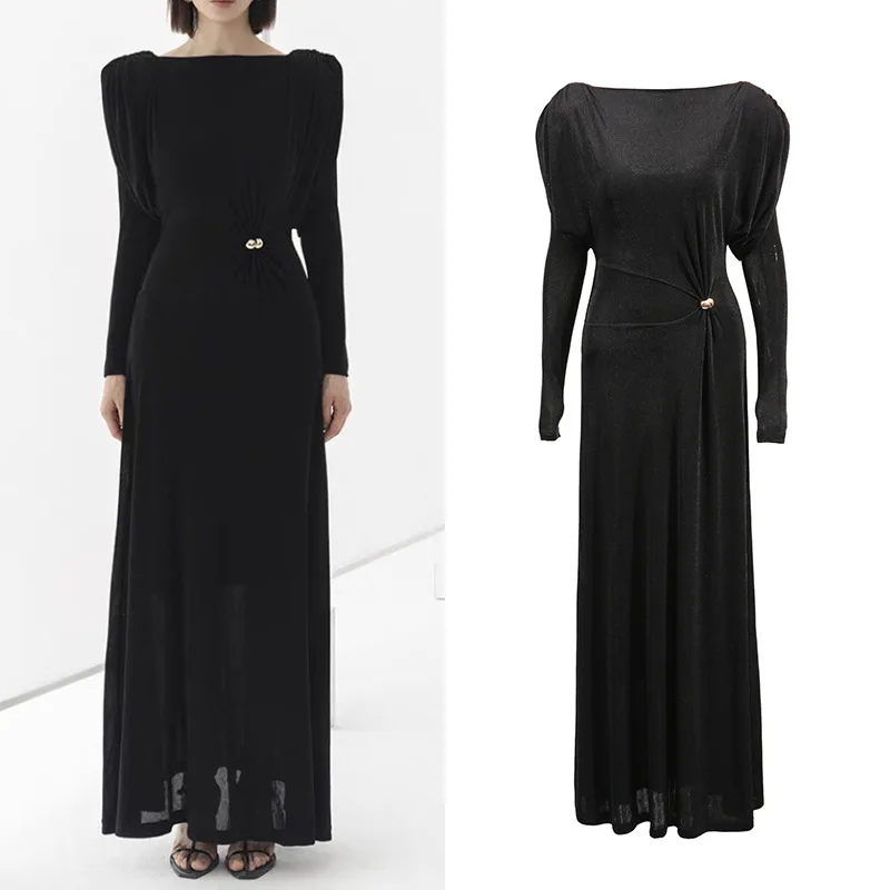 Product Name: New Elegant High-end Round Neck Twisted Slim Women Casual Dresses Long Dress