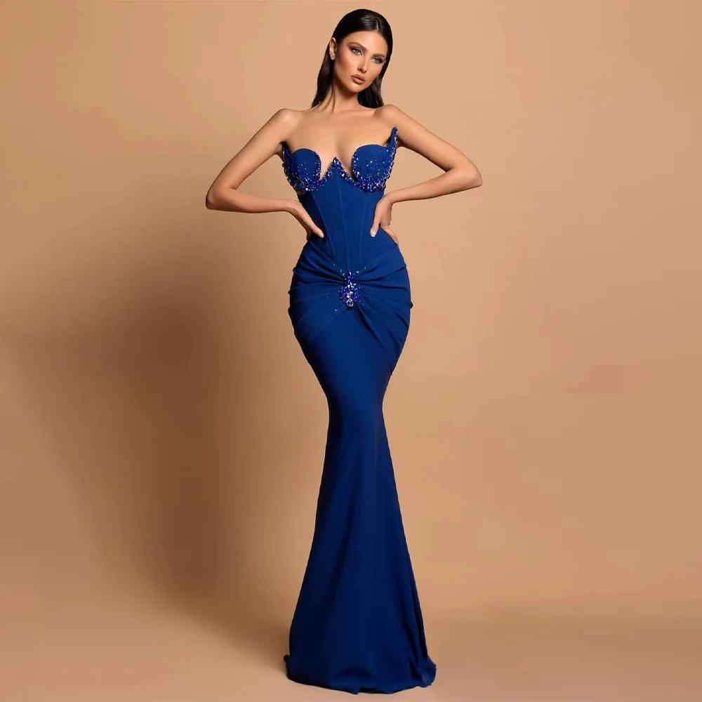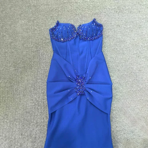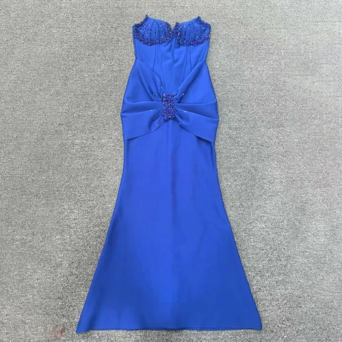 Product Name: New Fashion Design Backless One-Shoulder Pleated Fishbone Slim Long Fishtail Dress Elegant Women Sexy Evening Dress