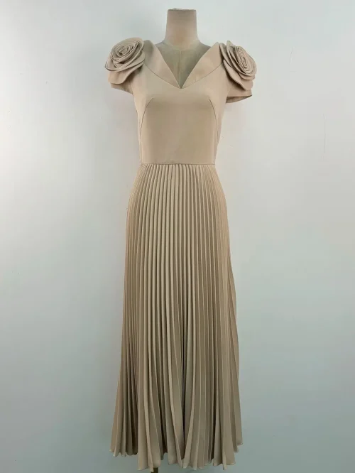 Product Name: New Fashion High Waist Flower Dress Long Dress Sexy V-neck Pleated Long Female Dress