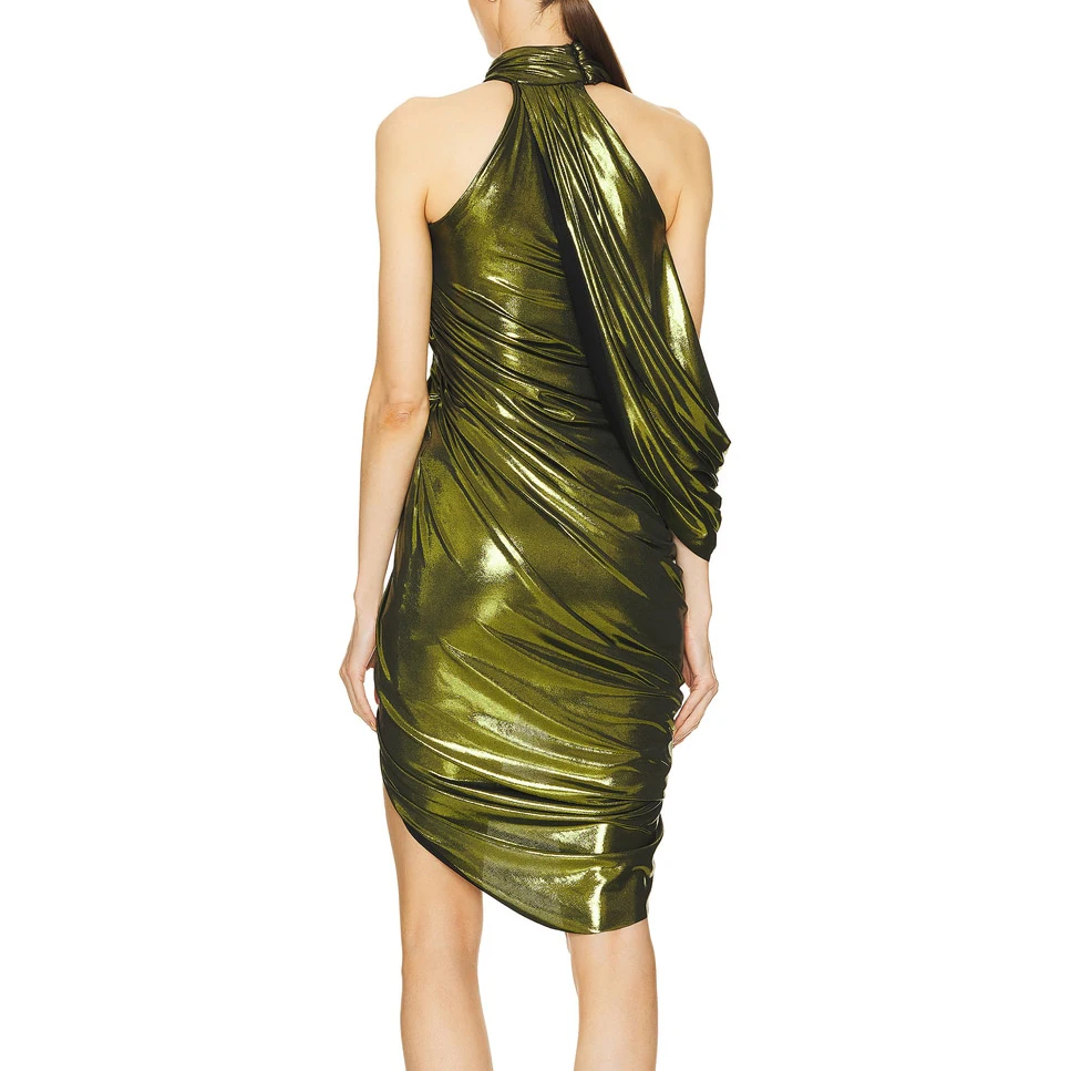 Product Name: New Fashion Luxury Style Green Women Clothing Halter Ruched Draped Design Sexy Party Bodycon Asymmetrical Midi Dress