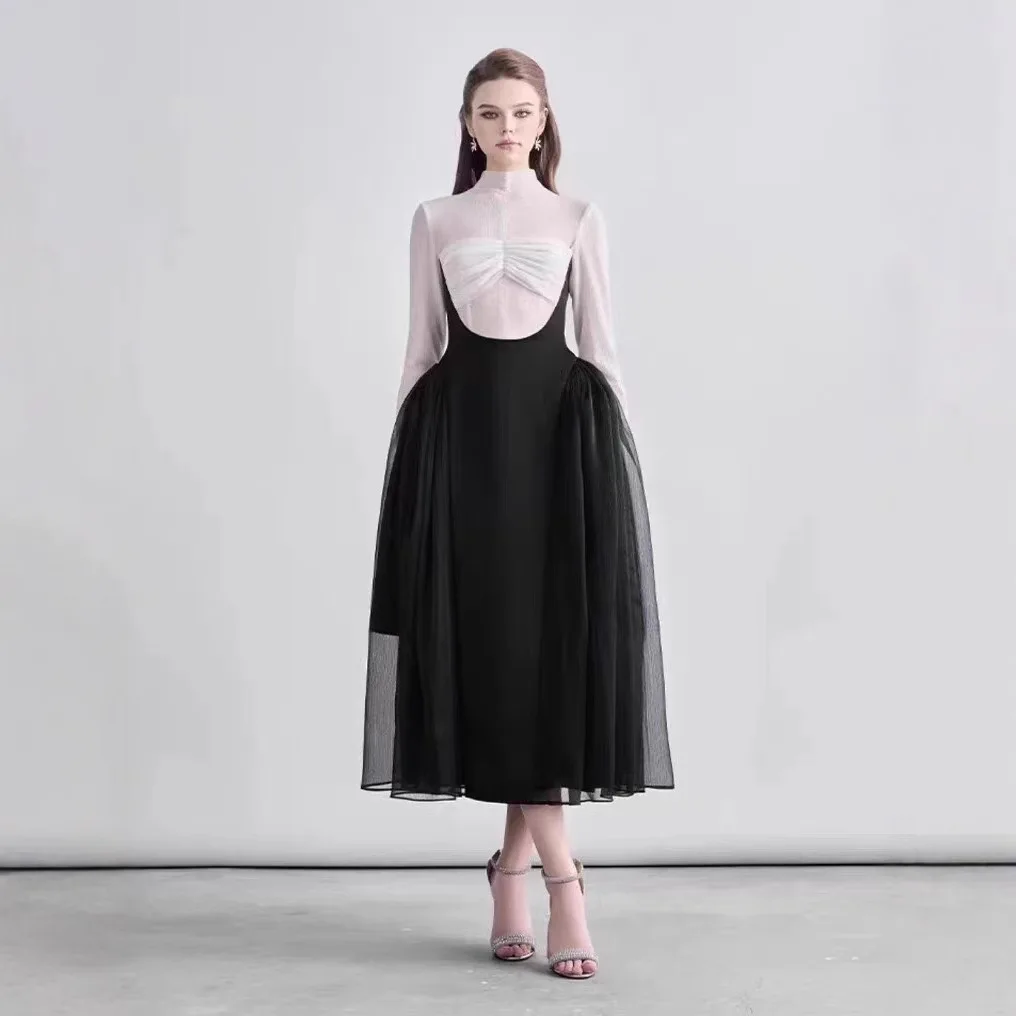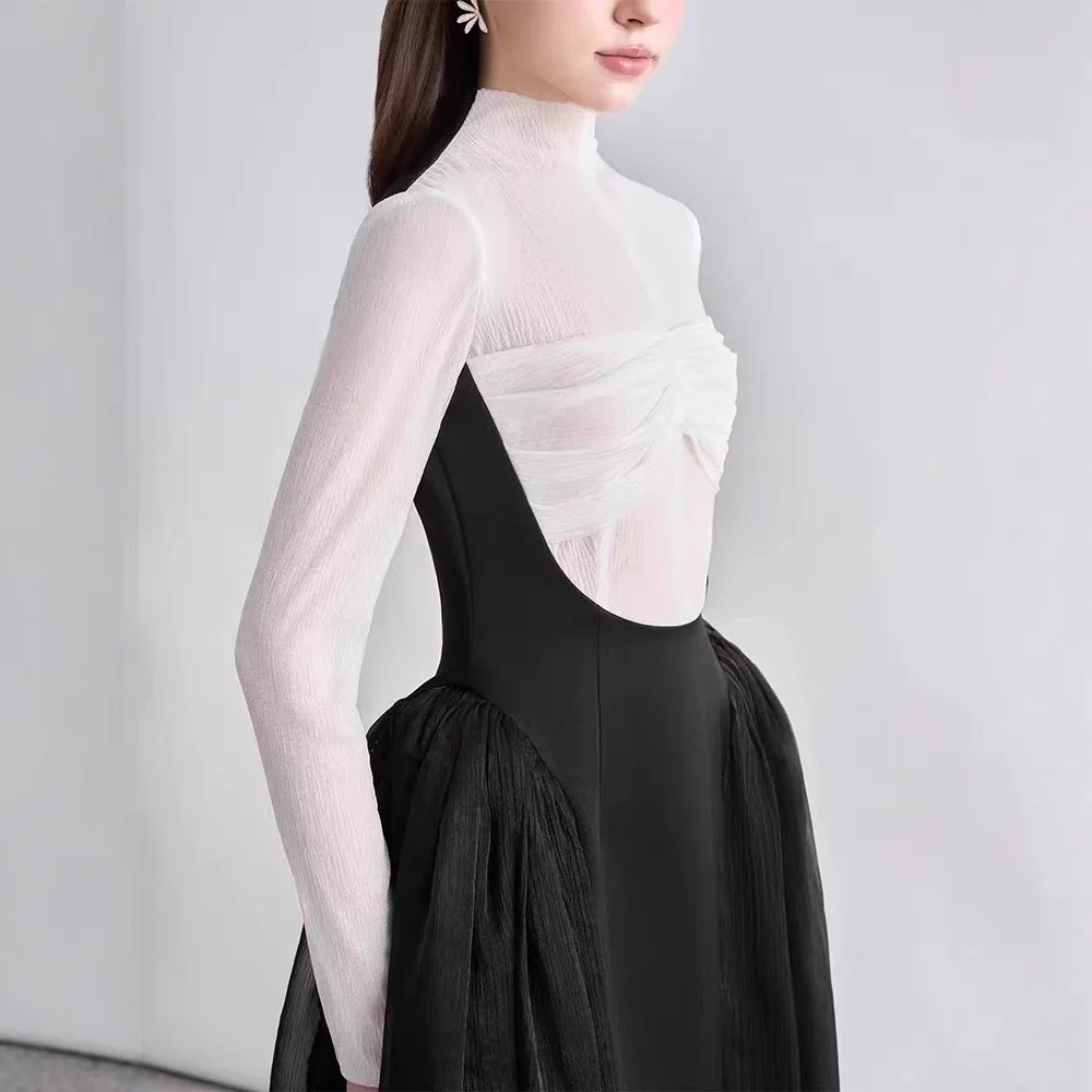 New High End Temperament Elegant Party Dresses Irregular off the Shoulder Slimming Long Dress