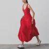 Product Name: New Rose Red Bow Hollow Dark Stretch Waist Relaxed Comfortable Women’s Senior Knitted Dress