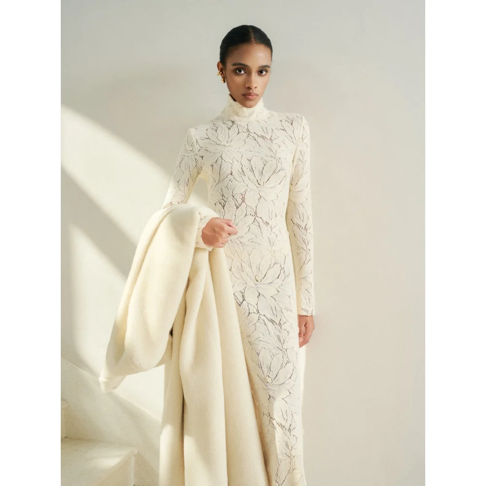 Product Name: New Style Dresses Women Long-Sleeved Stella Emb Lace Midi Dress Organic Cotton Flower Lace Two Piece Set Women Whiteant