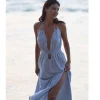 Product Name: New Women Fashion Suede Halter Low V Neck Ruched Waist Draped Sexy Backless Lady Elegant Wedding Party Sleeveless Midi Dress