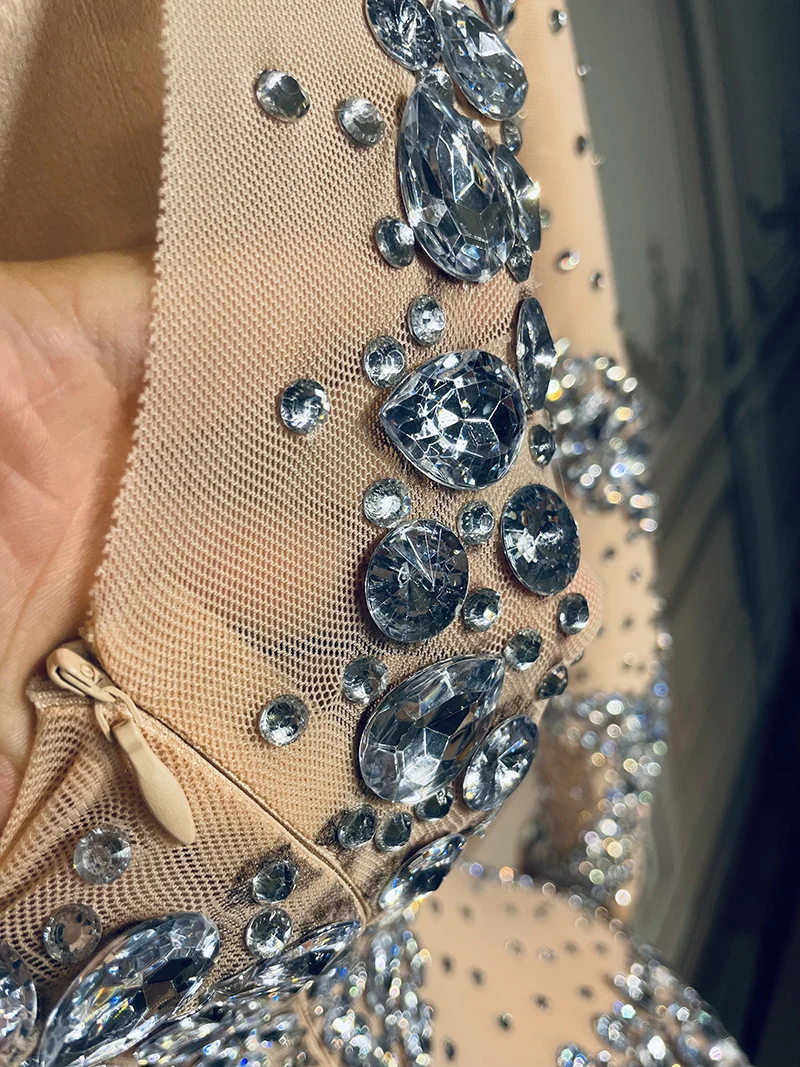 Product Name: NOCANCE Women Spring 2023 Nude Color Dazzling Diamonds Sexy See Through Dresses Club Dress for Ball Roon Red Carpet for Evening