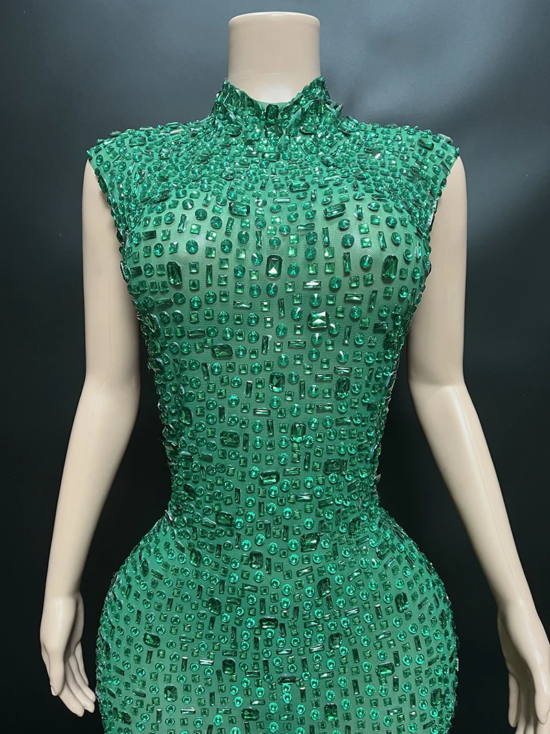 Product Name: NOVANCE Dropshipping Agent Sleeveless High Neck Shiny Green Sequin Dress Sexy See Through Long Dresses Women for Evening Party
