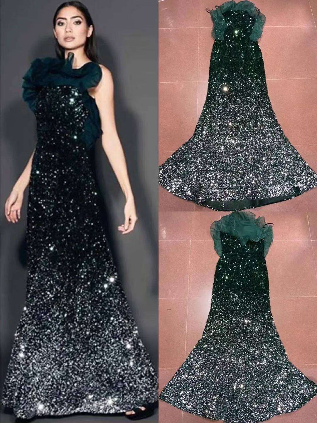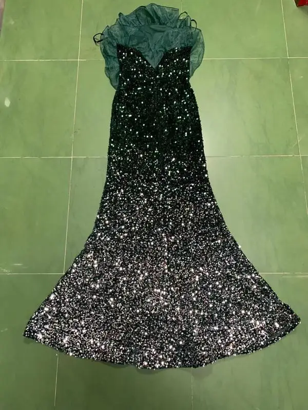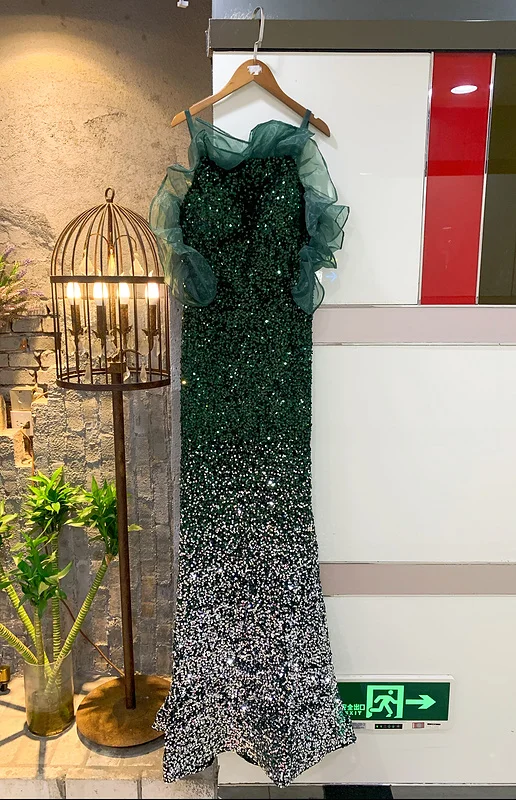 Product Name: NOVANCE F2834 Sparkling Diamonds Dotted With Dark Green Prom Dresses 2021 Party Dress Evening Woman off Shoulder Summer Dress