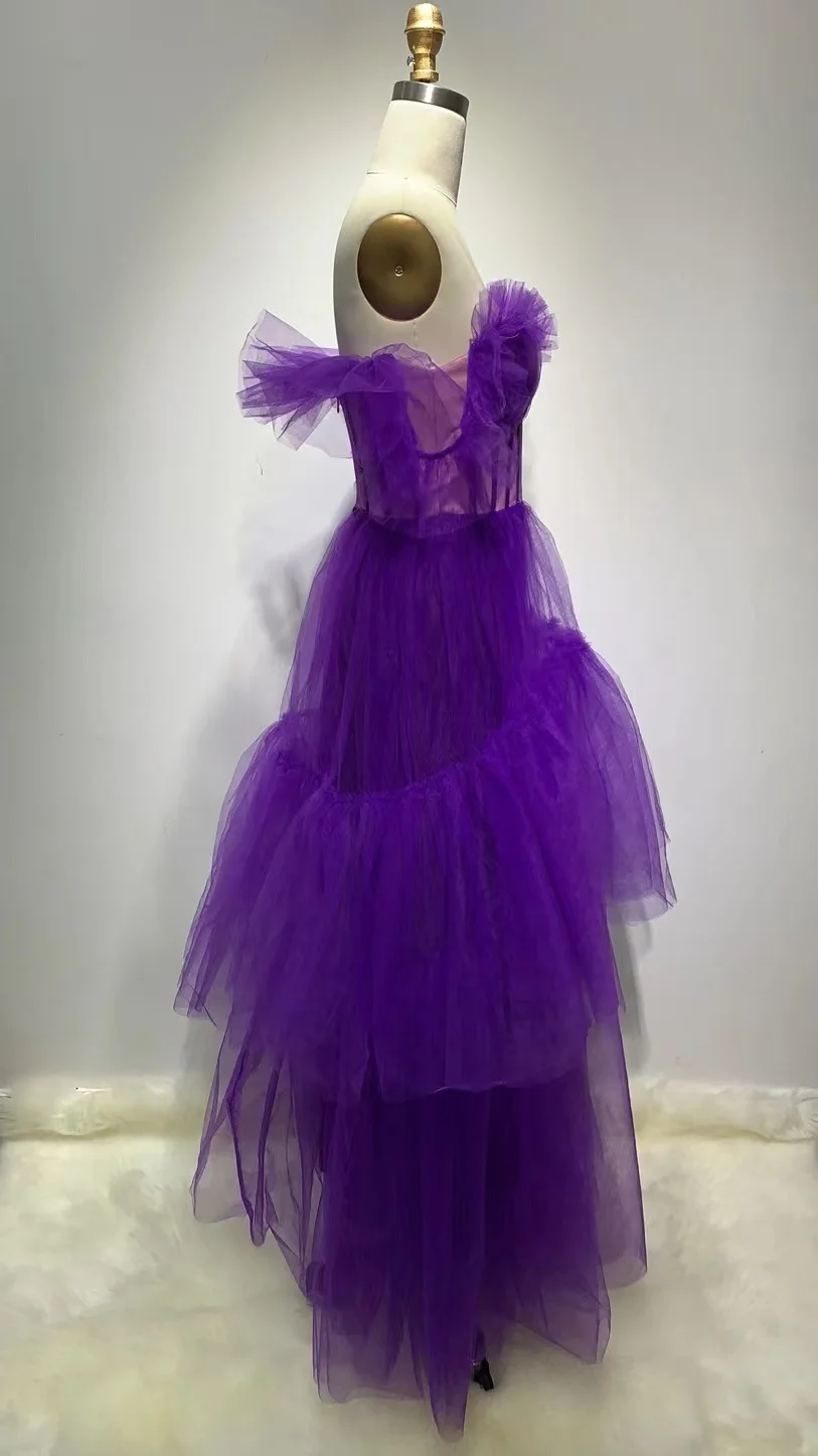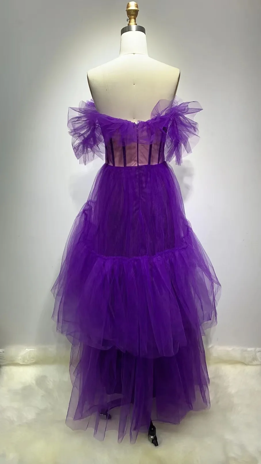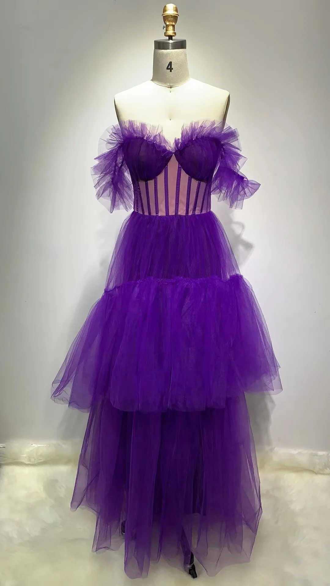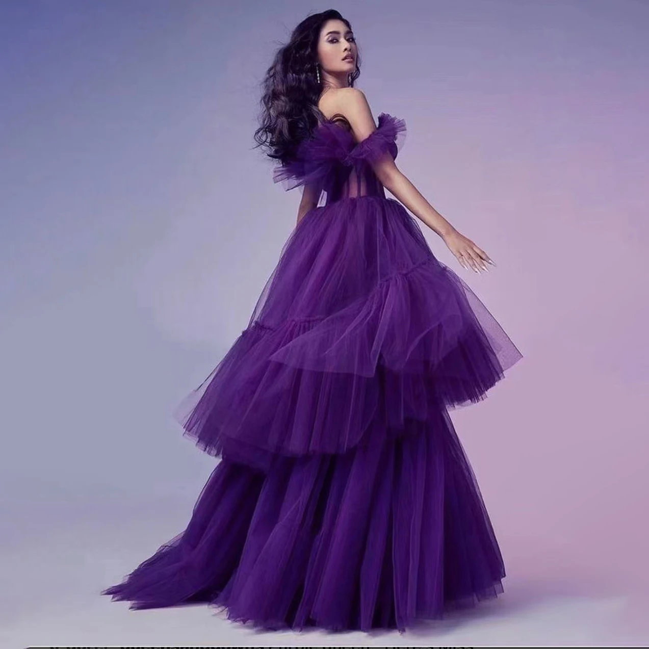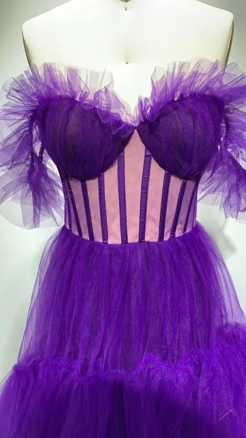 Product Name: Novance F2977 Off the Shoulder Purple Puff Wedding Gowns Sexy Bridal Luxurious Dress Vintage Clothing Mesh Peacock Evening Dress