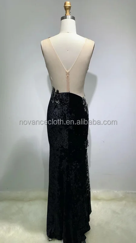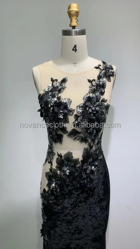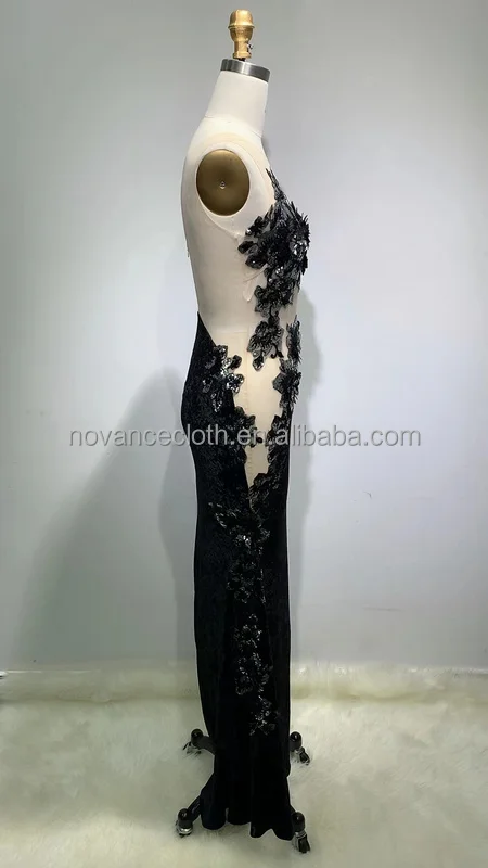 Product Name: Novance F3056 New Fashion Dress Woman Black Shiny Sequin Patch Wedding Dress Elegant Long Party Birthday Plus Size Evening Dress