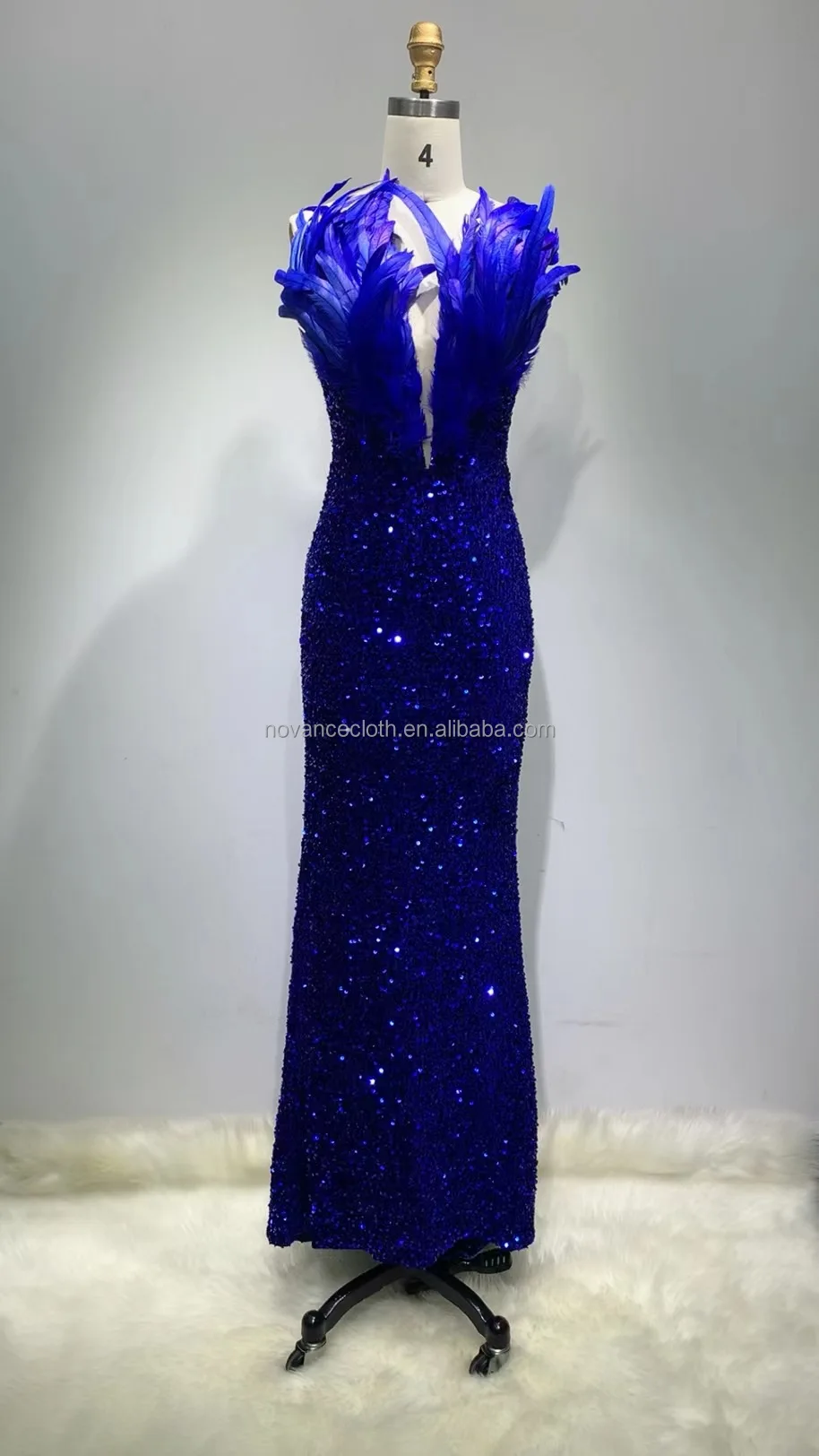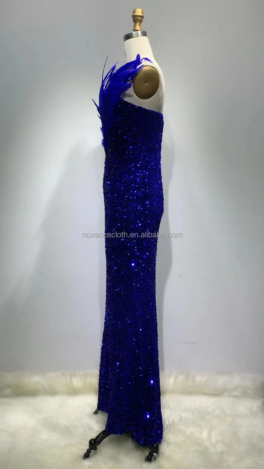 Product Name: Novance F3080 Garments Stocks Elegant Long Dresses 2022 Feather Bluey Costume Stitching Sexy V-Neck Banquet Party Club Dress
