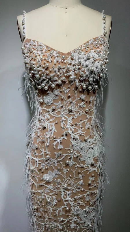 NOVANCE Latest Product Elegant White Pearls Suspender Long Pos Pageant Gown Backless Active Wear for Evening Party