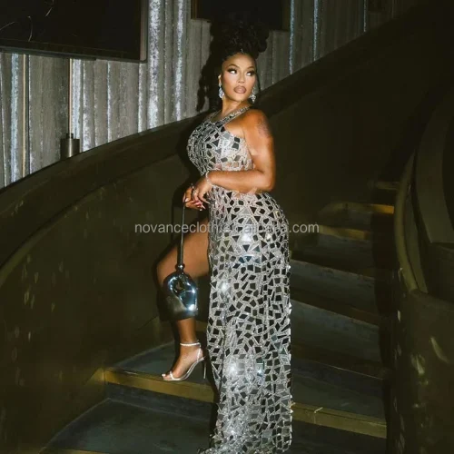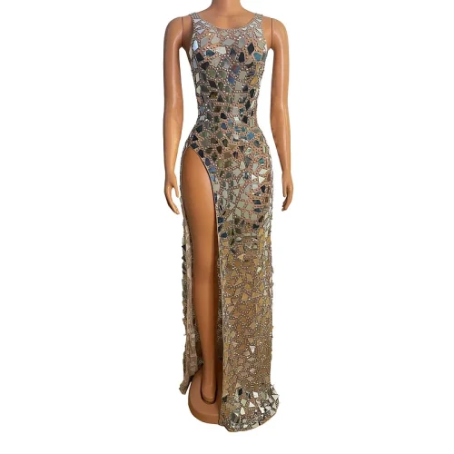 Novance Summer Sun Dress 2023 Mirror High Slit Ladies Sexy Party Dress Applique Rhinestone Backless Maxi Dress Vestidos De Club
