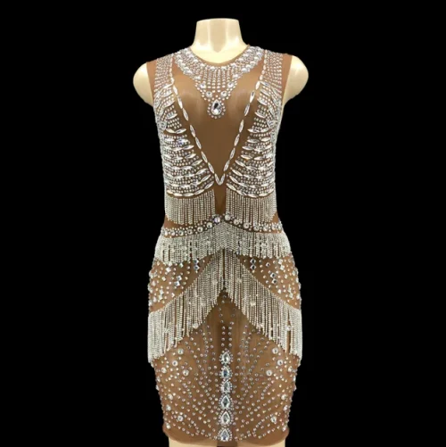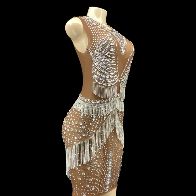 Product Name: Novance Women Summer Outfits 2022 Sexy Perspective Club Wear Sexy Dress for Women Tassel Diamond Party Evening Dress Crystals