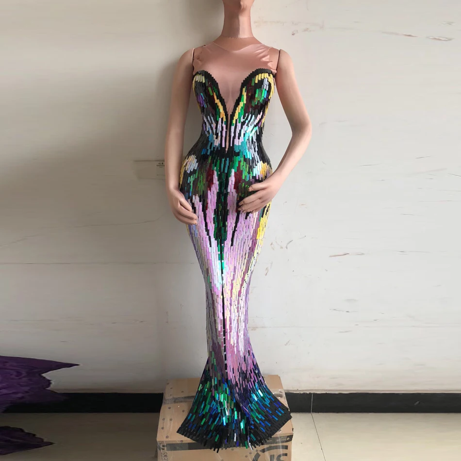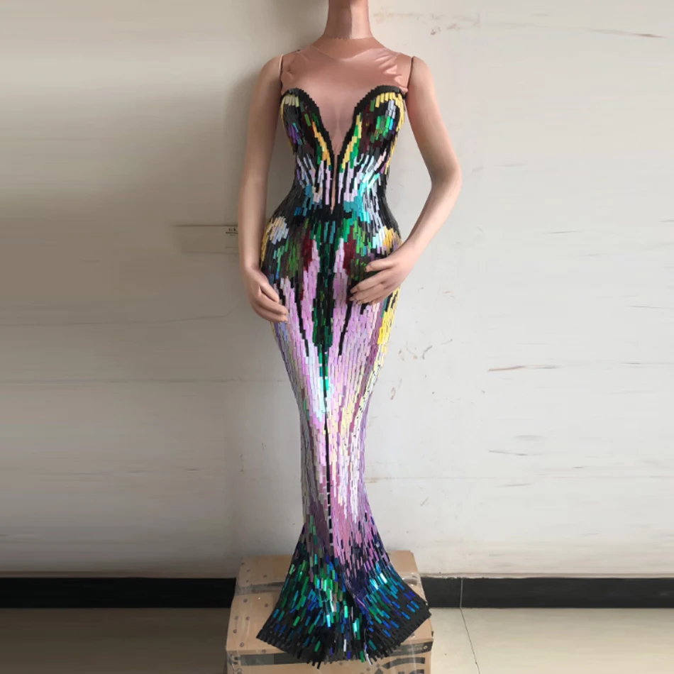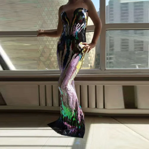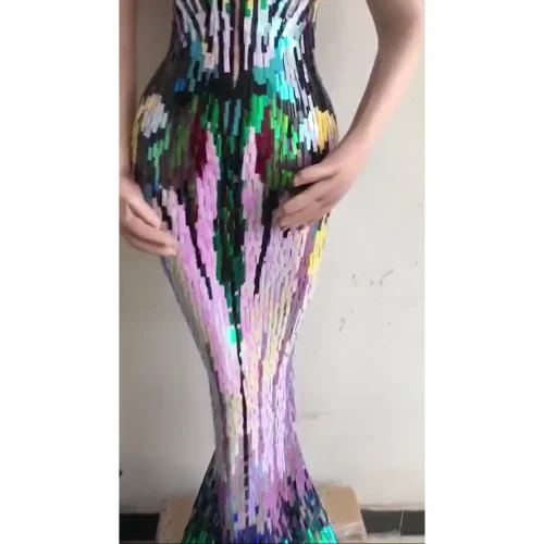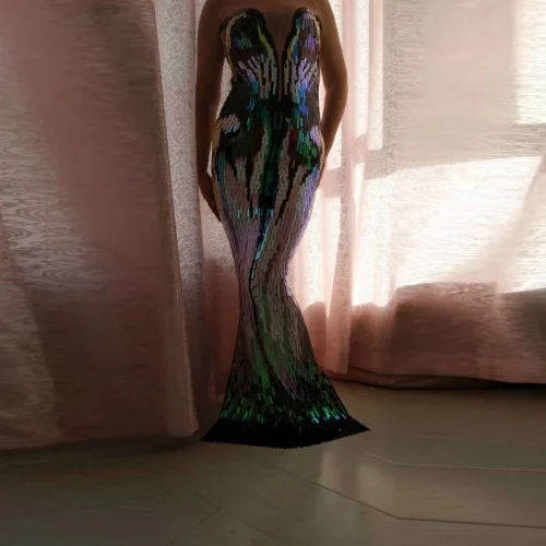 Product Name: Novance Y1013 Sparkly Rhinestone Costume Bodycon Women Dresses Prom Club Dresses Birthday Performance Costume-da-sirenetta-donna