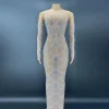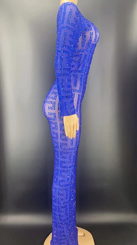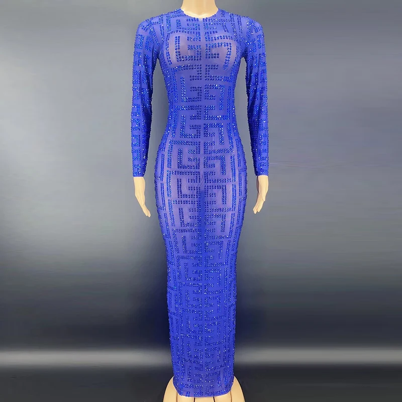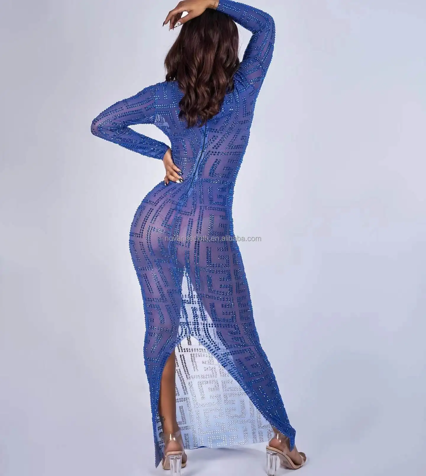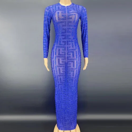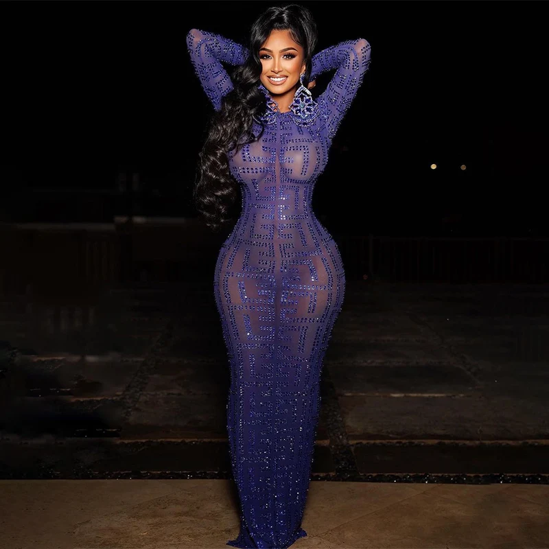 Product Name: NOVANCE Y2256-B Dropship Manufacturers Blue Sheer Sparkling Diamond Long Sleeve Loose Women Evening Dress Plus Sise Sexy