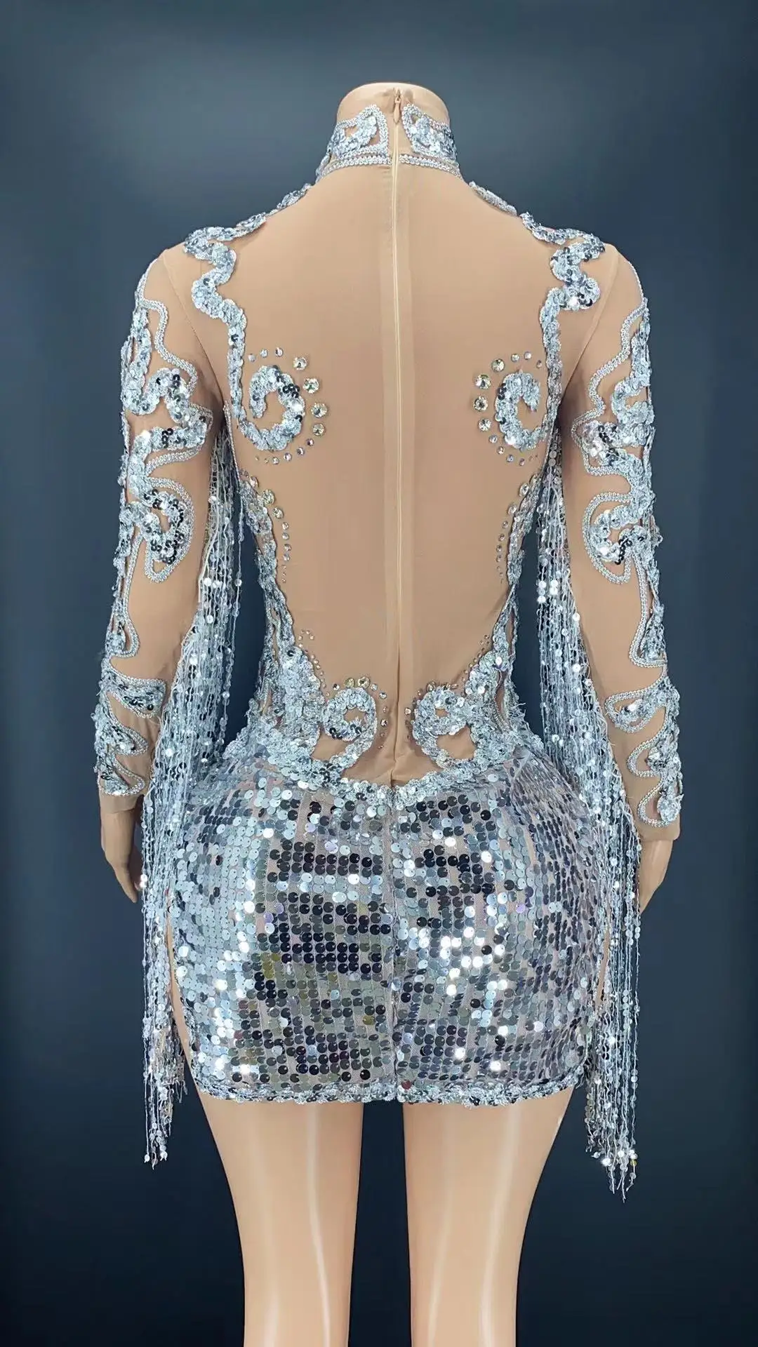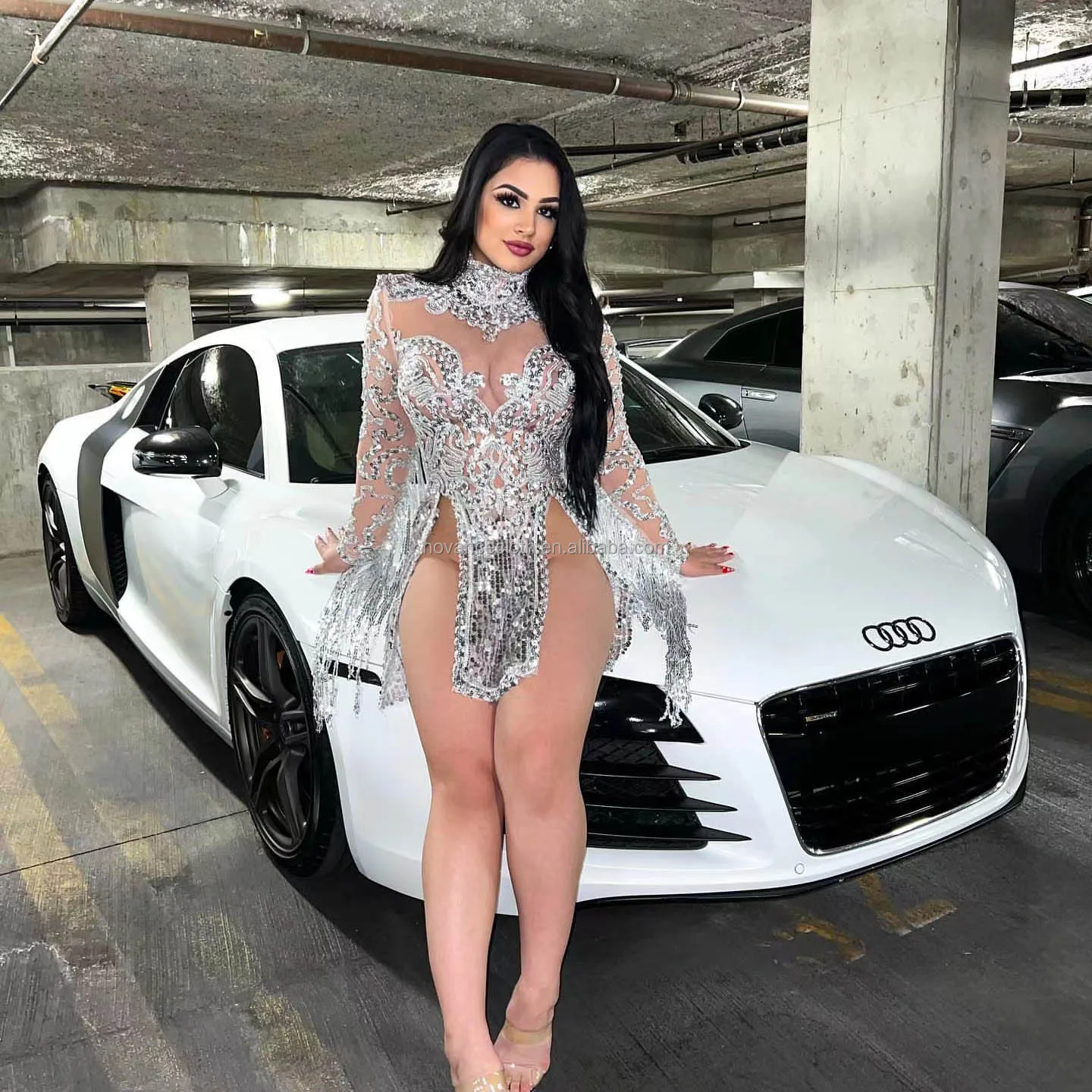 Product Name: NOVANCE Y2258-B Summer 2022 Silver Tassel Dress High Slit Dress Crystal Diamond Women Clothing Nightclub Singer Stage Costume