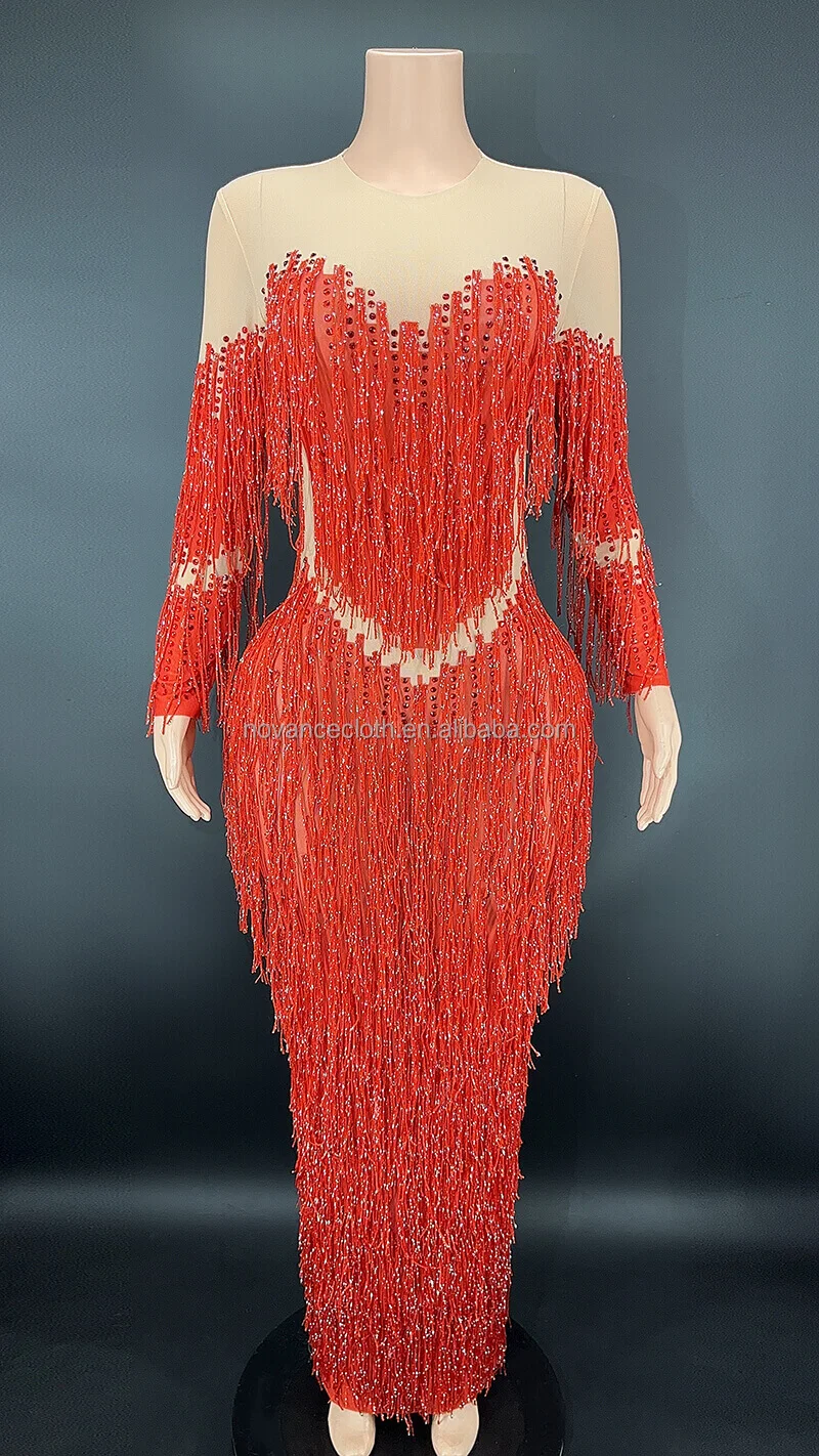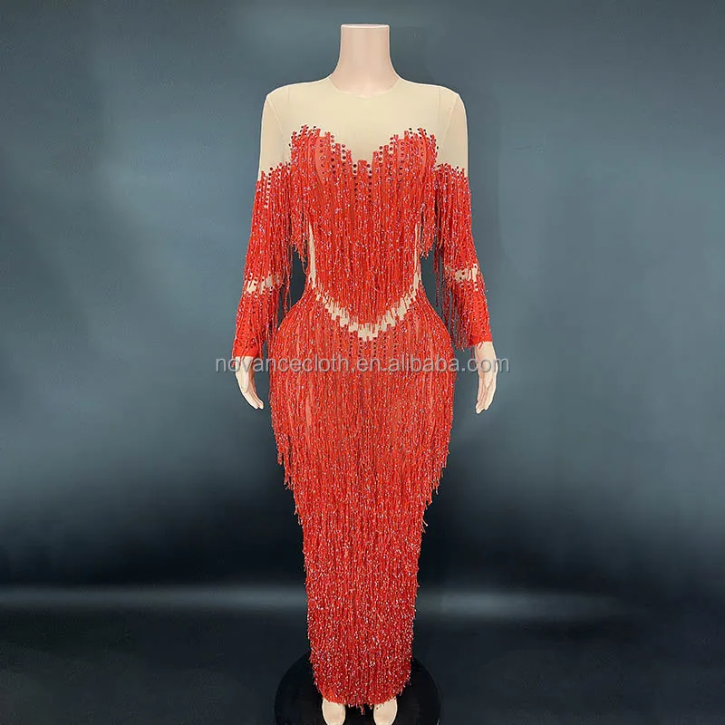 Product Name: Novance Y2341 Clothes-Woman-Chic Red Tassel Evening Dresses Long Party Homecoming Dresses Plus Size Formal Dress Evening Elegant