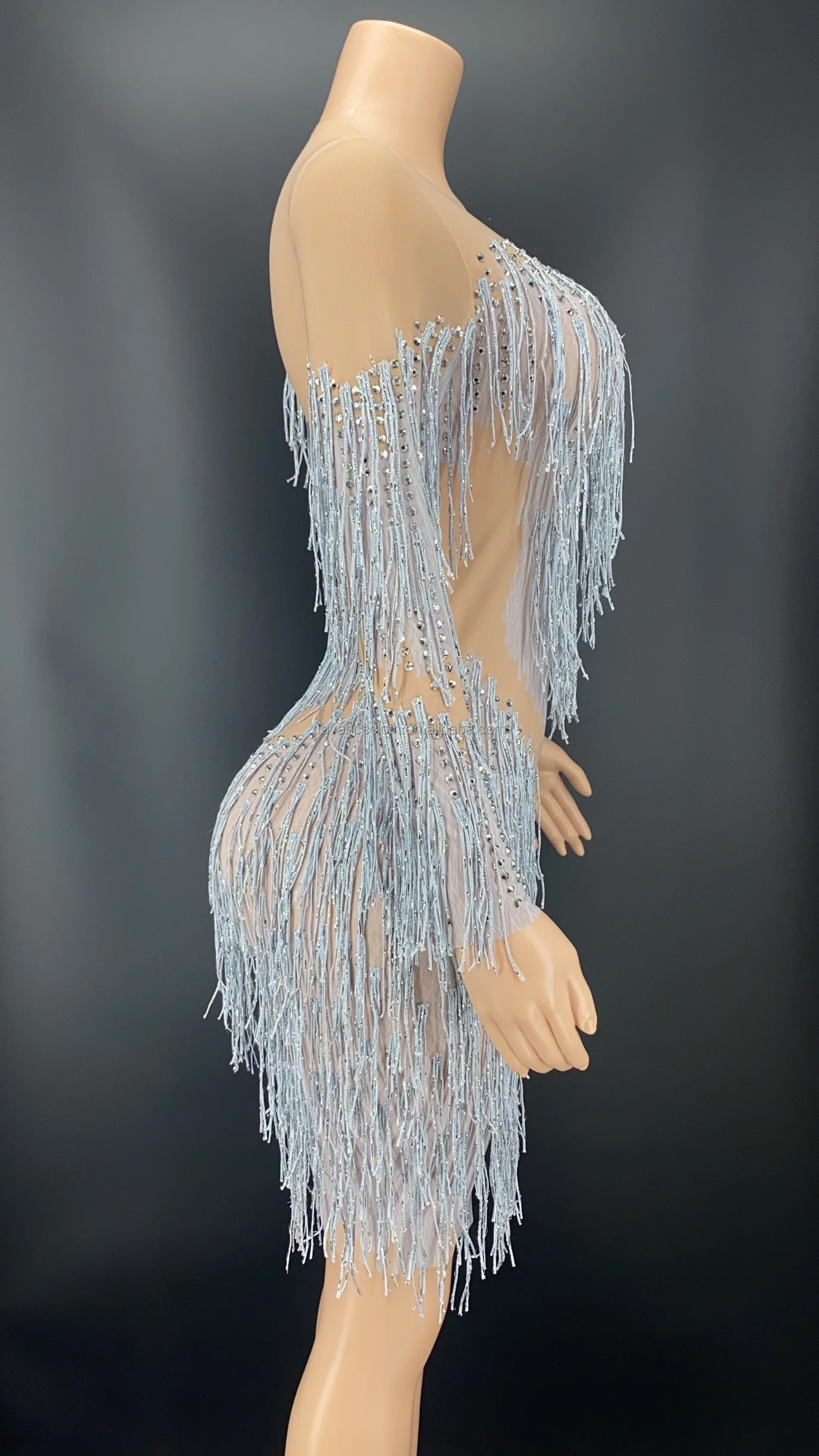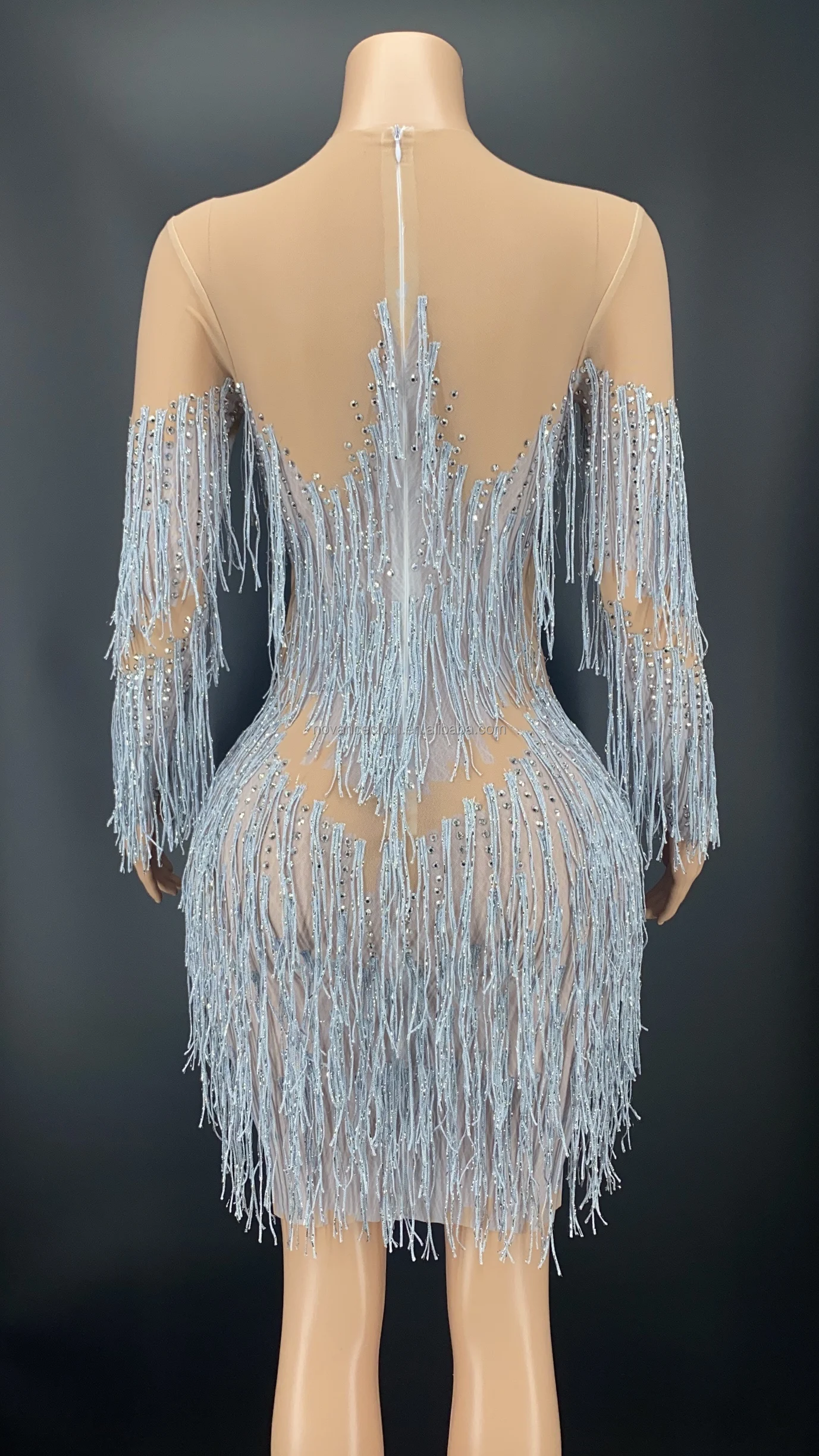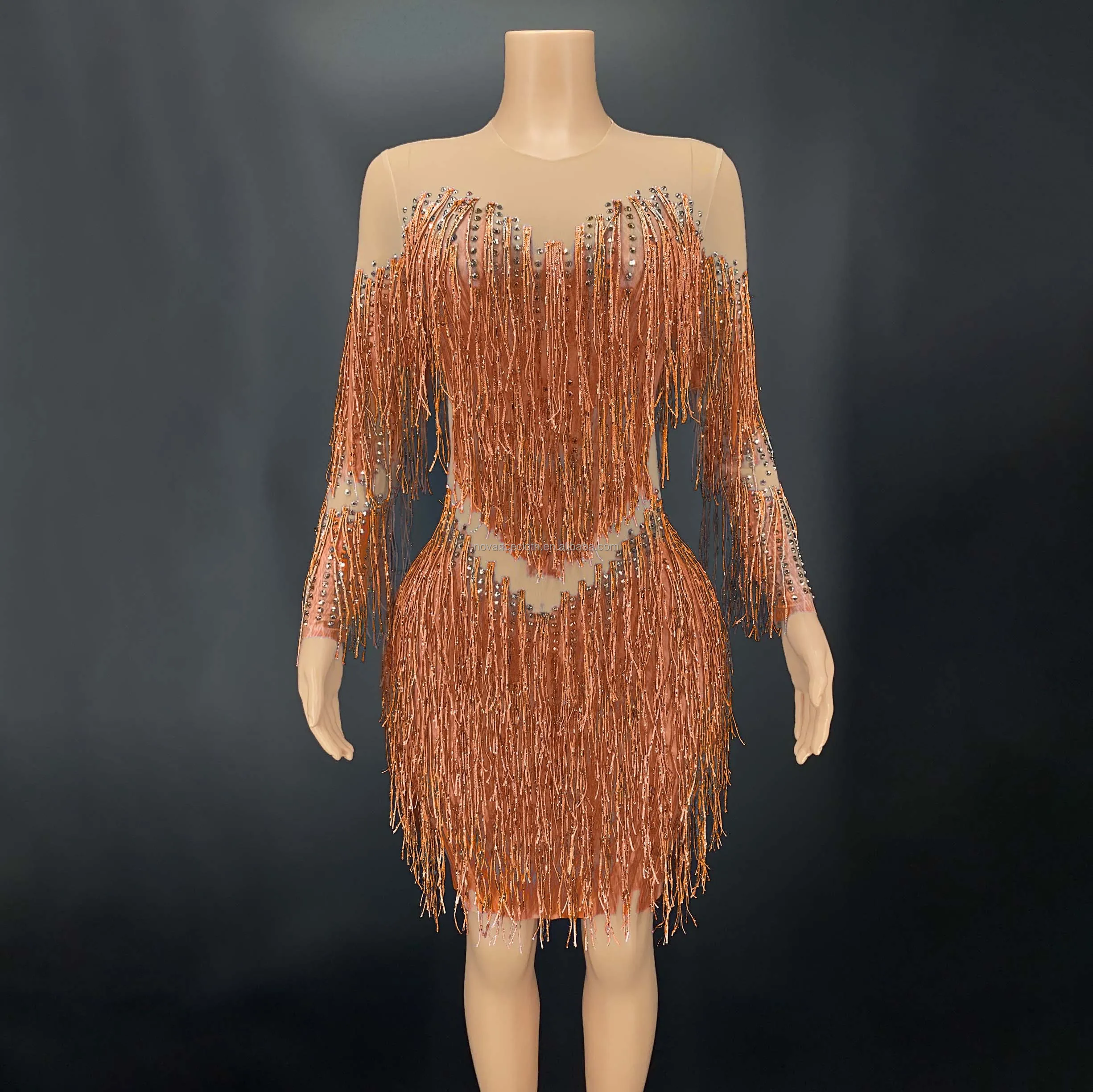 Novance Y2341 Women Outfit Cute Sparking Diamonds Tassels Orange Skirt Slim Mini Dress for Prom Party