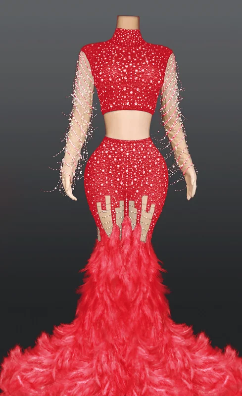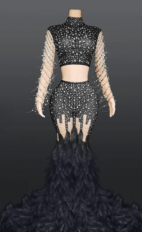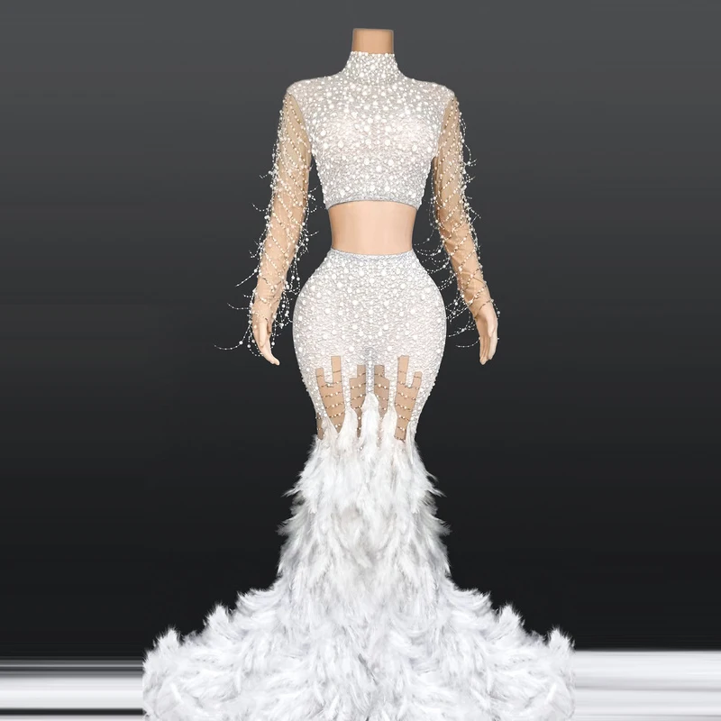 Product Name: NOVANCE Y2369-B Prom Dresses 2022 Rhinestone White Wedding Gown Women Slim Two Piece Outfits Mermaid Feather Wedding Gown
