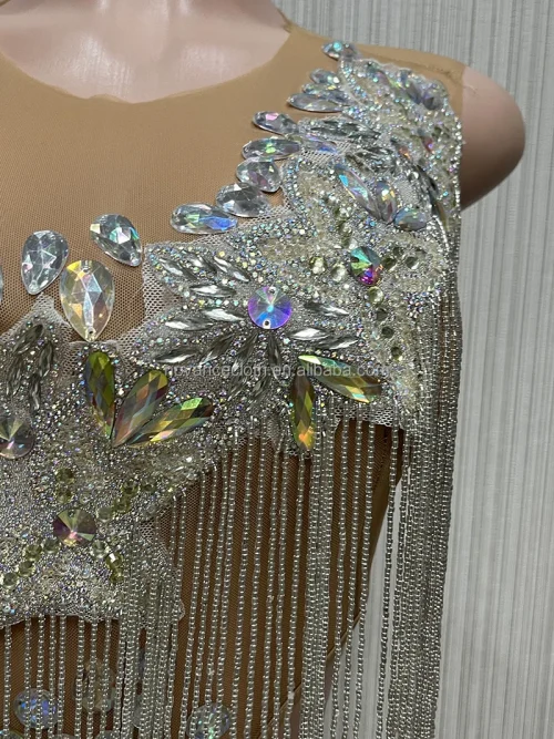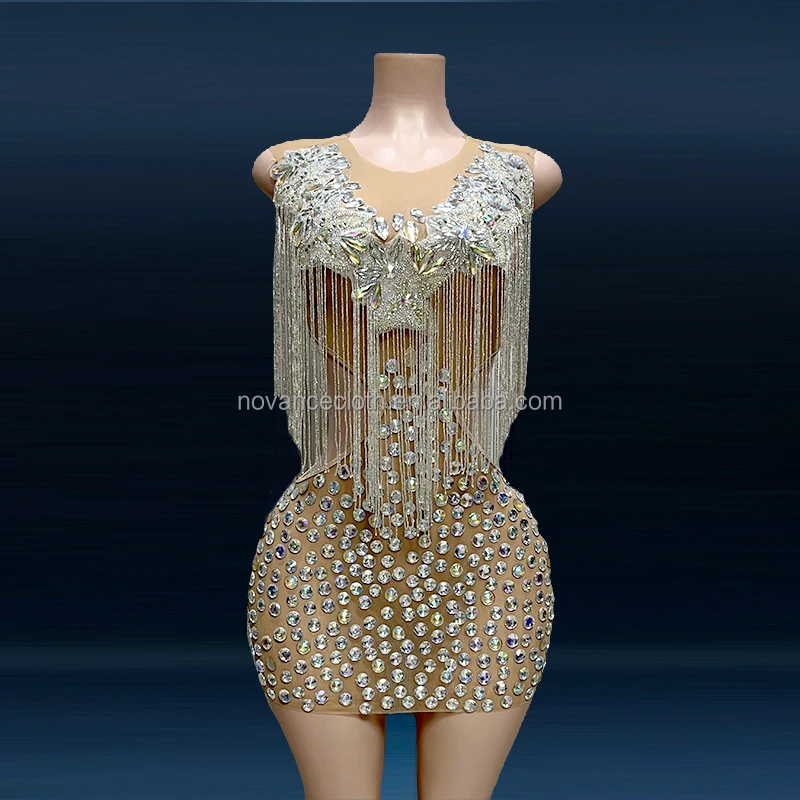 Product Name: Novance Y2504 High Fashion Blingbling Diamond Tassel Special Needs Clothing Nightclub Style Hollow Out Dress Vestido Pasarela