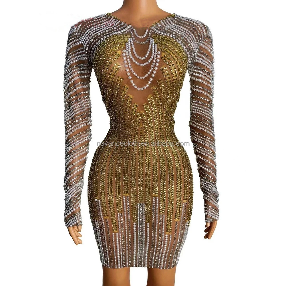 Product Name: NOVANCE Y2545 Top Seller 2022 Elegant Dazzling Pearls Diamonds Dress Women Mother of the Bride Dresses for Wedding Party