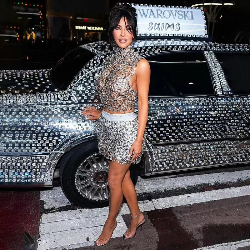 Novance Y3509-E Women’s Clothing Set 2023 Performance Wear Sexy Clothes With Crystals Short Diamond Dress Formal for Women