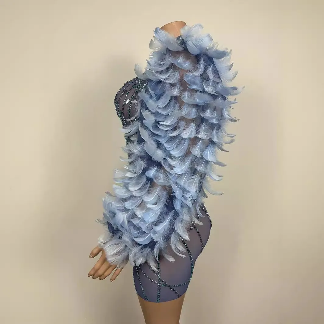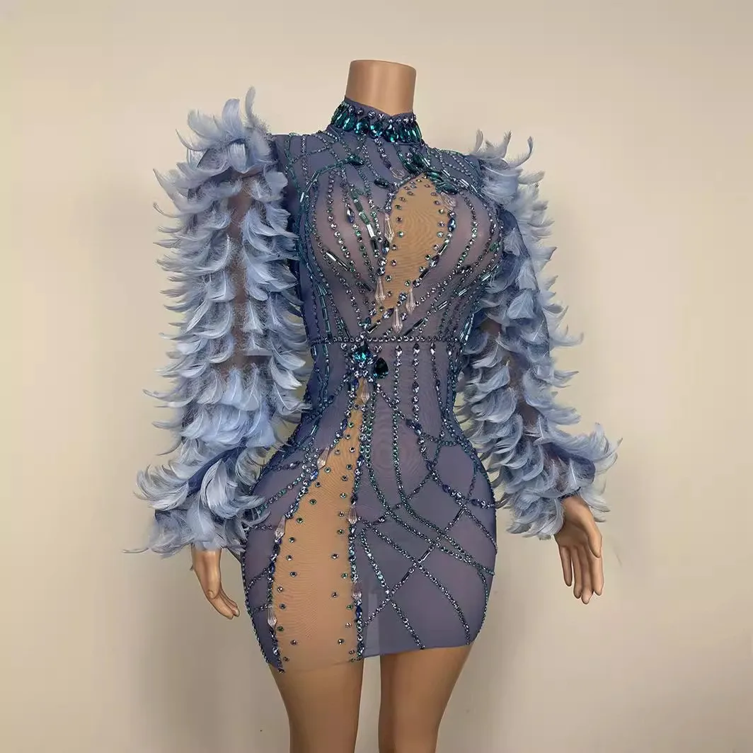 Novance Y3743 Womens Clothing Feathers Long Sleeve Cocktail Dresses Short Party Dresses Women Evening Elegance