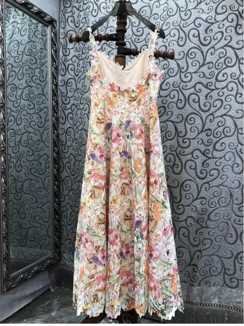 Product Name: Novia Party 2024 Long Maxi Dress Ladies Allover Crochet Lace Embroidery Sweet Sleeveless Zipper for Spring Summer Fashion for
