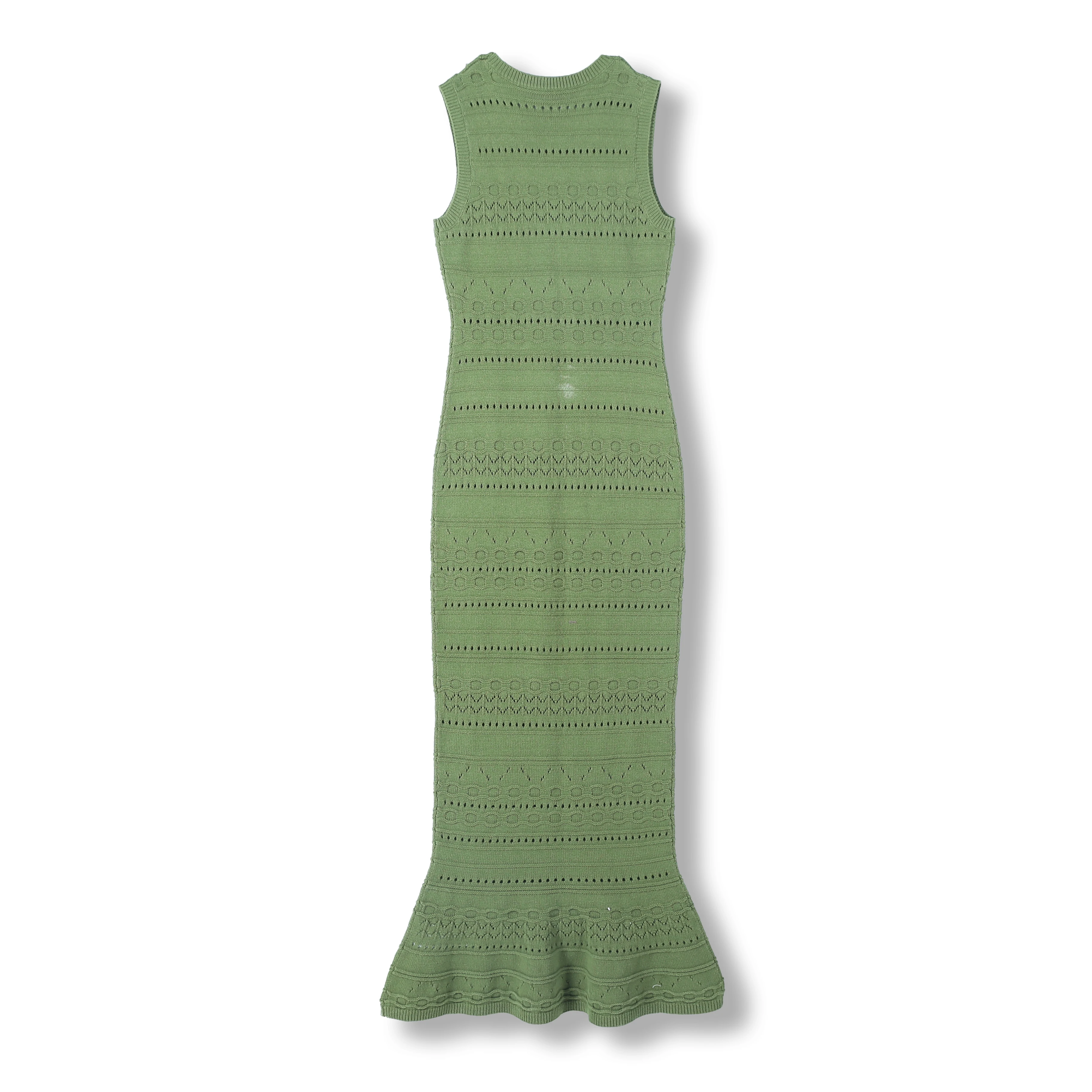 Product Name: ODM Elastic Waist Crew Neck Floor-Length Long Dress Women Sexy Sleeveless Crew Neck Pointelle Sweater Dress