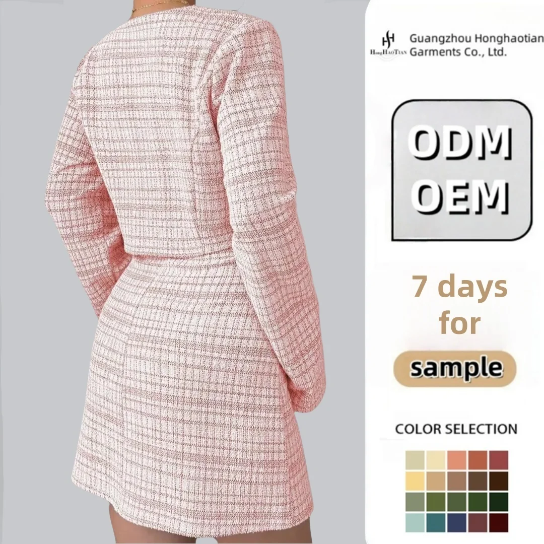 ODM Spring Autumn Elegant Plaid Short Jacket and Sleeveless Women’s Dress Set