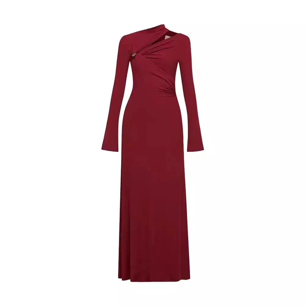 Product Name: Old Money Clothing Women Dresses Women Lady Elegant Party Dresses Twist Detail and Cut-out Neckline Elegant Long-Sleeved Gown