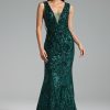 Oly Deep V Sequins Midi Dress