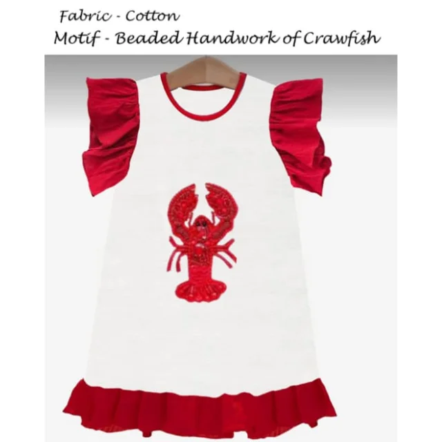 Product Name: One Sided Shoulder Dress All the Way From India Red and White Crab Motif Sequin Beaded Dress Amazingly Sequin Beaded Dress