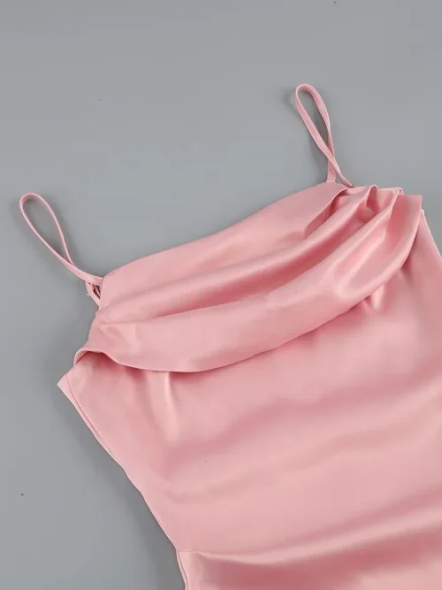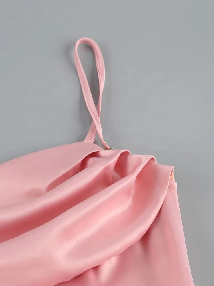 OUDINA Fashion Irregular Suspender Sleeveless Pleated Ruffled Women Casual Party Dresses Women’s Dress