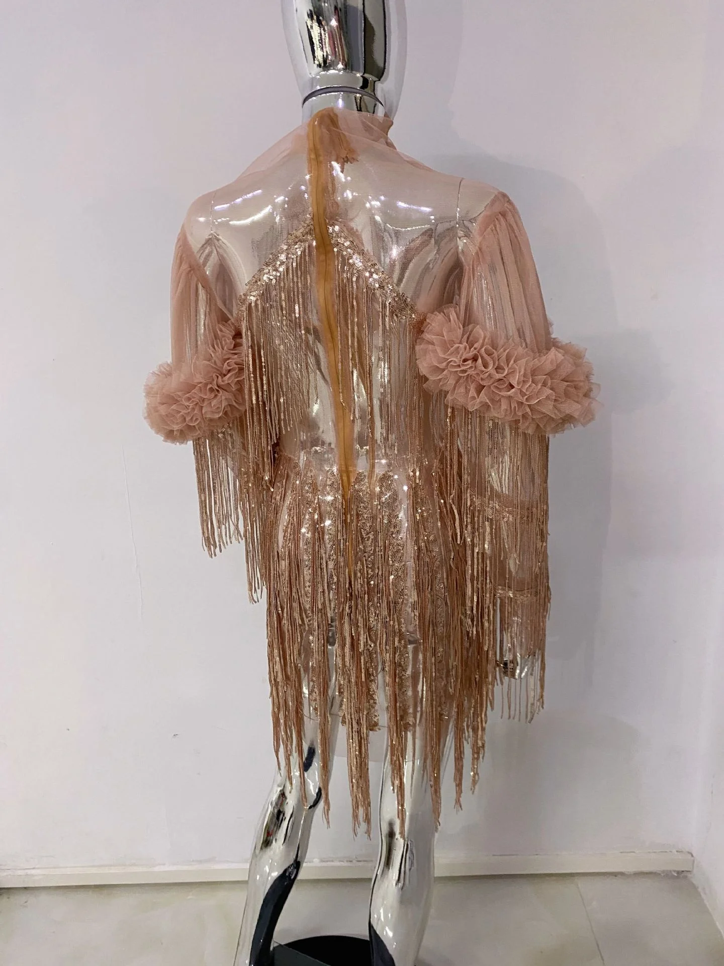 Product Name: OUDINA New Arrival Mesh Tassel Dress Fashion Sequin Short Dress Evening Party Dresses Women