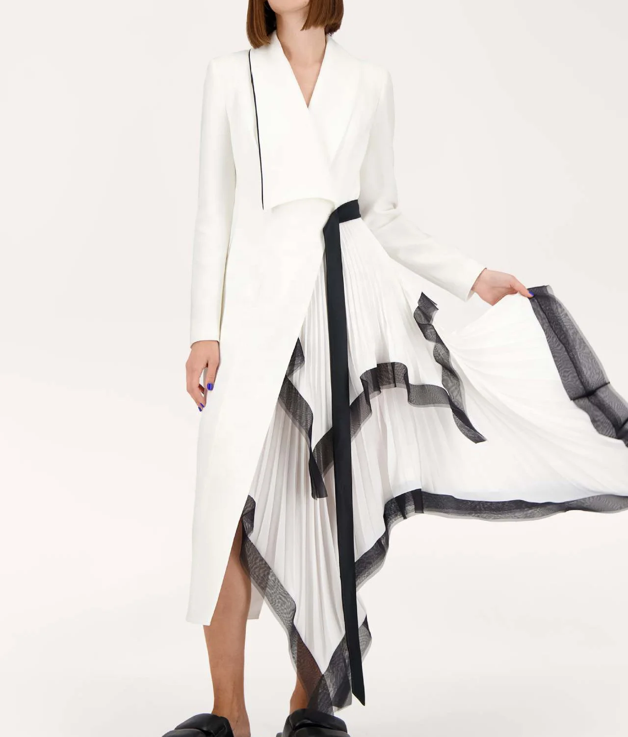 Product Name: OUDINA Trendy Asymmetrical Pleated Loose Ruffle Contrast Color Long Dresses Women Elegant Dress Casual Women’s Dresses